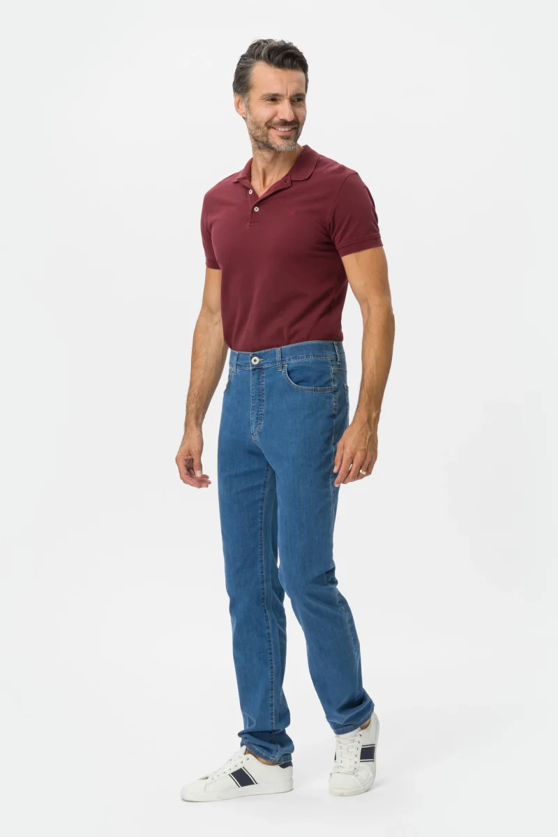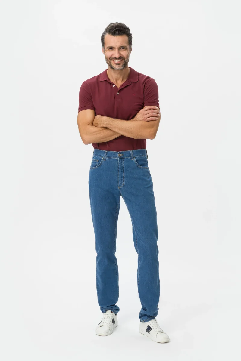 Jeans Uomo RegularDenim stretch Peso tessuto: primavera/estate Jeans in denim blue stretch dalla vestibilitร regular con tessuto elasticizzato. Modello 5 tasche con filo a contrasto, chiusura bottone e zip. Un jeans classico, versatile e quotidiano, ti permetterร di creare outfit per qualsiasi occasione. I prodotti Iber nascono per essere comodi e per far sentire bene […]
