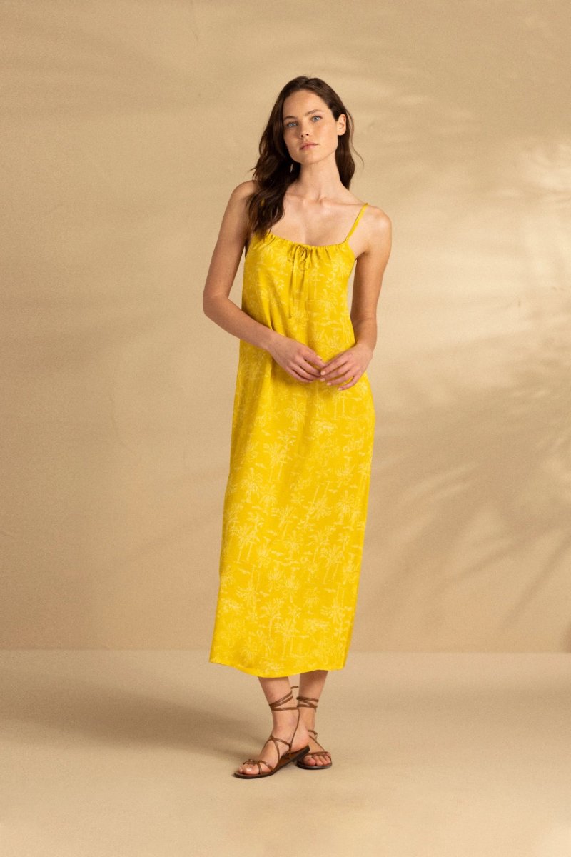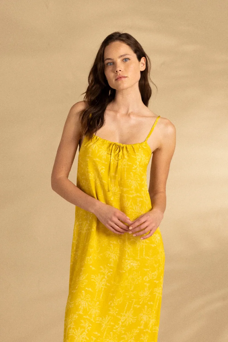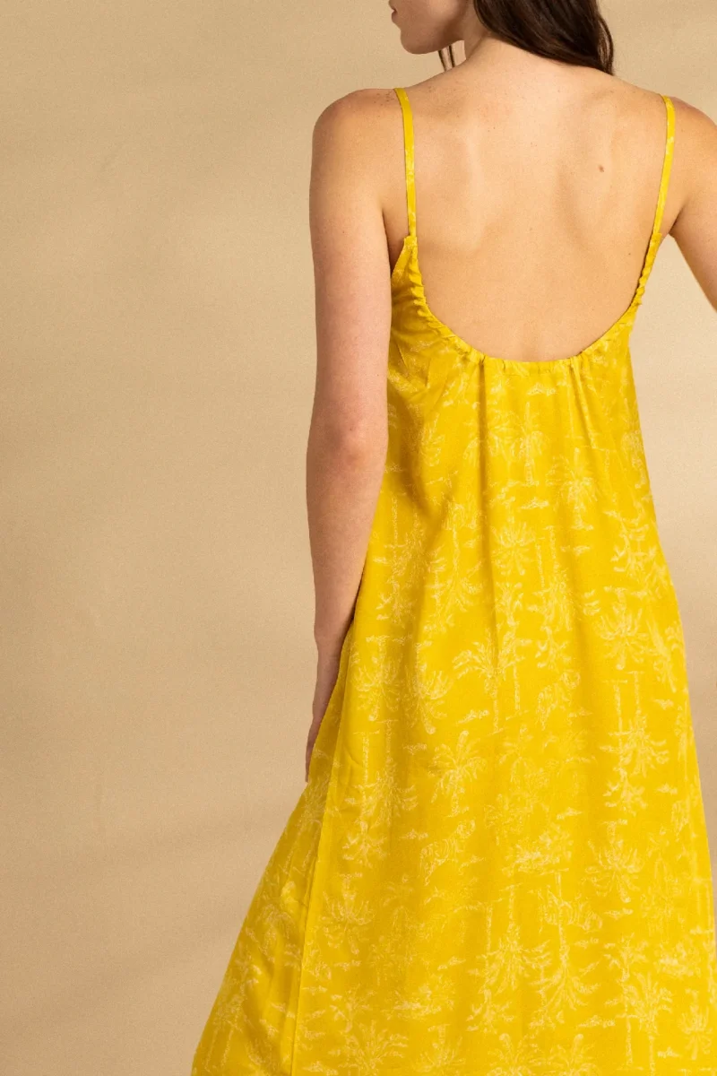 Abito lungo donna viscosa palme long bretellina con coulisse regolabile sul davanti e scollo profondo sul retro