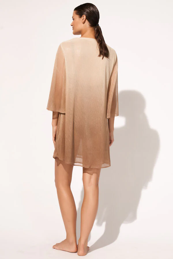 Tunica di mini lunghezza dal drappeggio casual con maniche leggermente svasate e scollo a V.