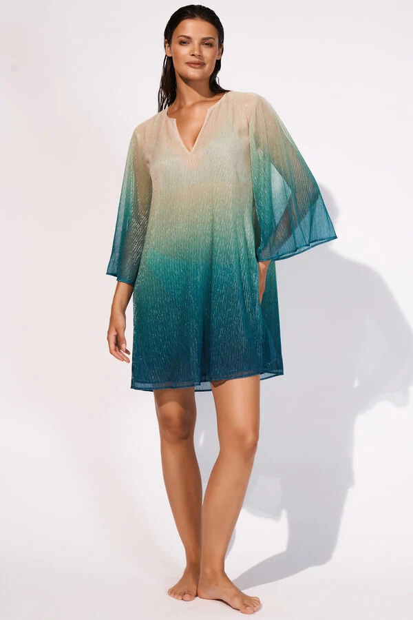 Tunica di mini lunghezza dal drappeggio casual con maniche leggermente svasate e scollo a V.