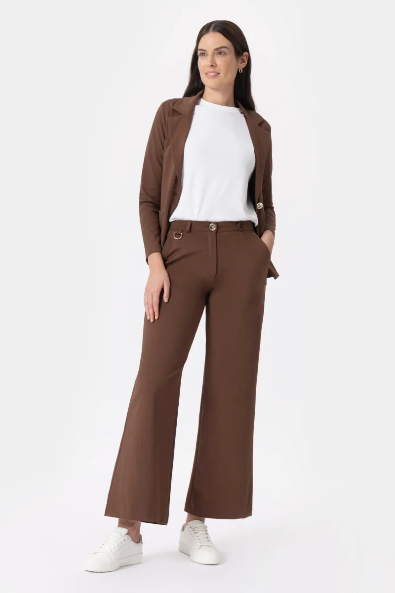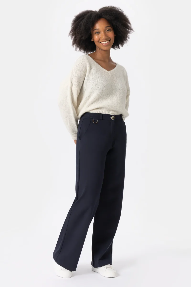 Pantalone con vestibilitร palazzo e gamba ampia. Questo modello รจ costruito con vita regolare elasticizzata, chiusura con zip e bottone. L’elastico in interno cintura regala un comfort assoluto. Un pantalone attuale, comodo e per ogni occasione, da quelle piรน quotidiane a quelle piรน eleganti. Abbinalo alla scarpa giusto e sarร un capo essenziale per questa stagione, facendoti sentire attuale e alla moda.