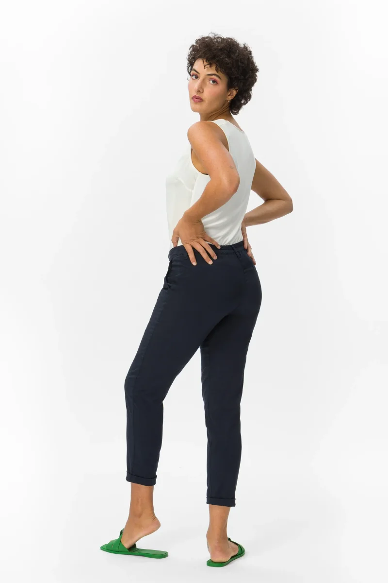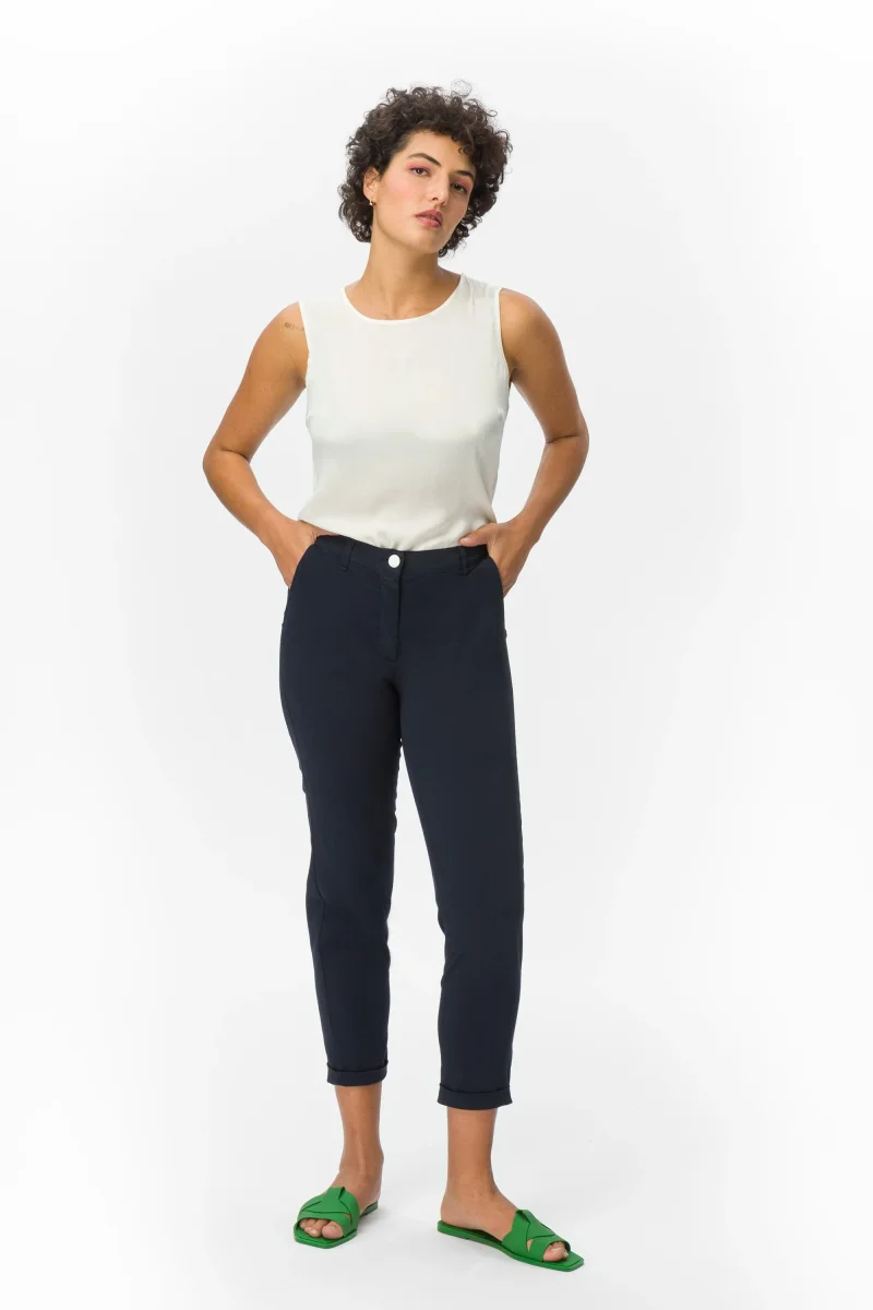 Pantaloni Donna con cintura in elastico per una migliore vestibilitร .Tessuto cotone leggero super stretch Peso tessuto: primavera/estate Pantalone in tessuto cotone super stretch, leggero e confortevole con vestibilitร relax. Questo modello รจ costruito con vita media elasticizzata e coulisse, con pratiche tasche laterali e pences per la massima comoditร . La forma del pantalone non aderente […]