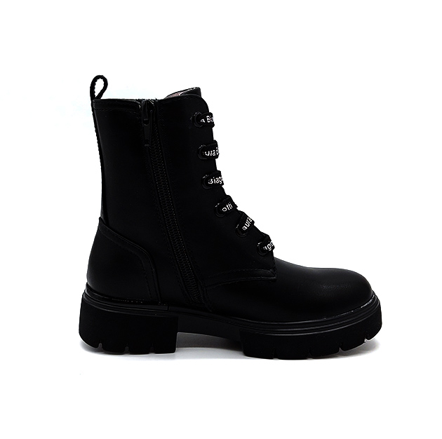 Anfibio Bambina nero in ecopelle, con lacci loggati ed elastico laterale.ย Stile essential-glam.