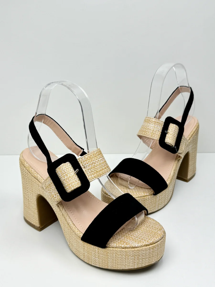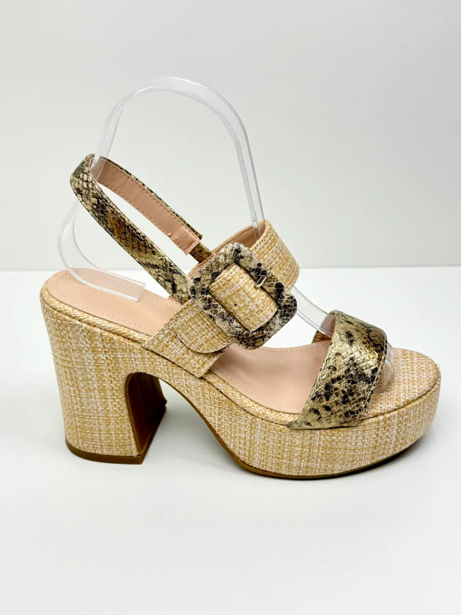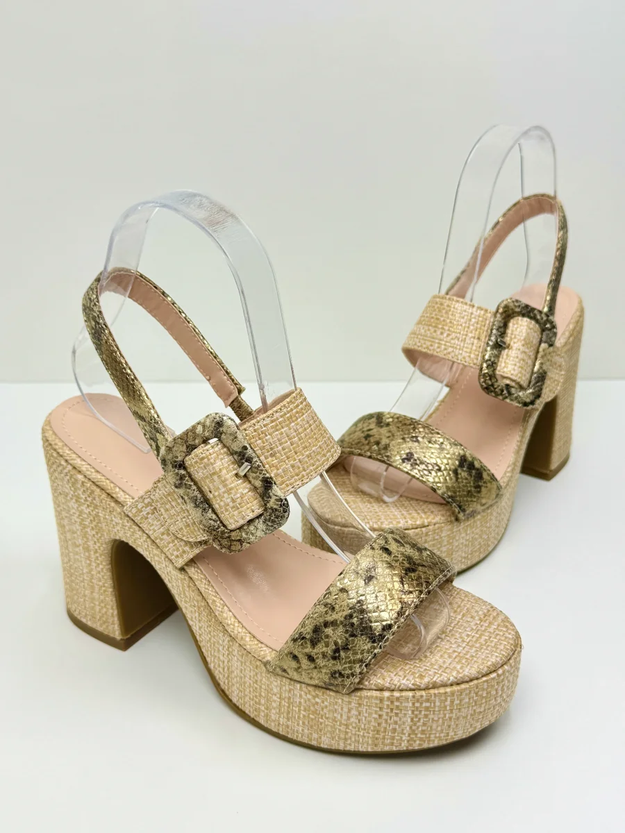 I sandali Angela hanno un tacco largo e un plateau, dallo stile retro-glam. La fascia frontale ha un cinturino con fibbia decorativa. Disponibile in: Pitonato e Nero.