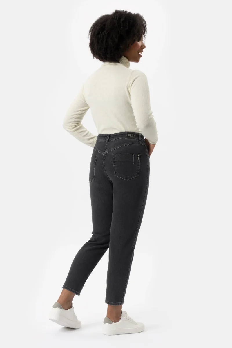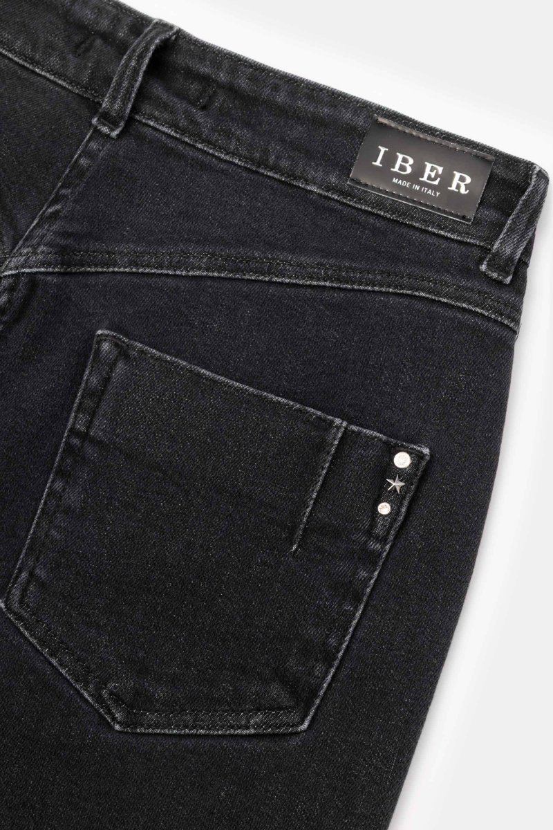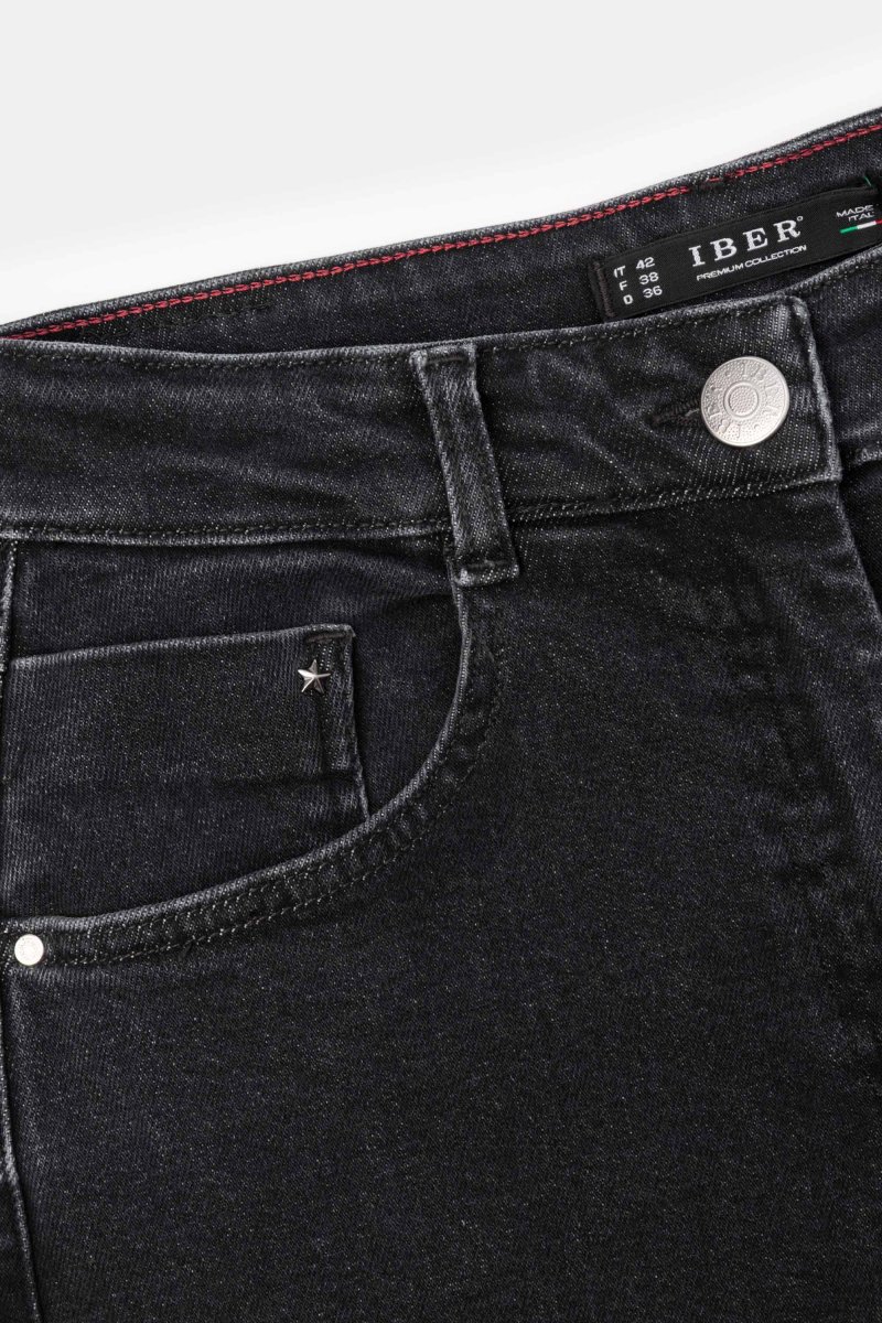 Almey Tmn309 Jeans in denim black super stretch con orlo sfrangiato