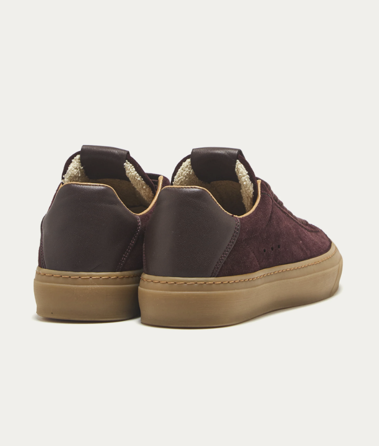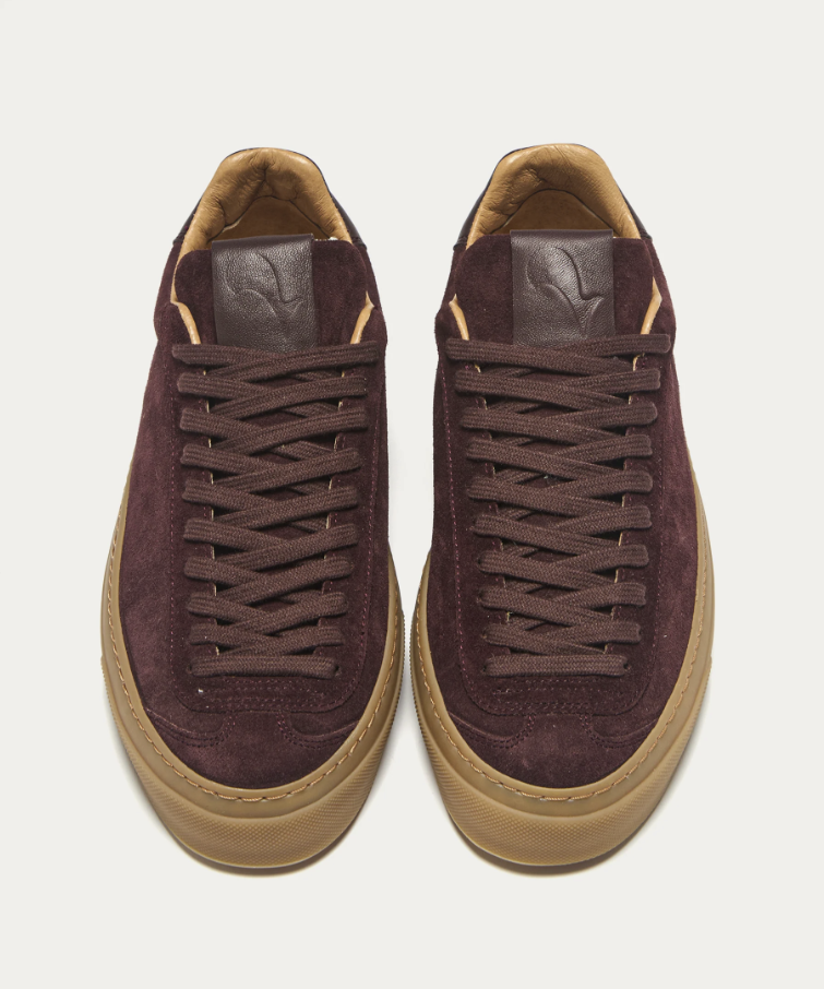 Sneaker in suede borgogna dal design minimalista ed elegante. Costruita con materiali selezionati per offrire comfort e qualitร .