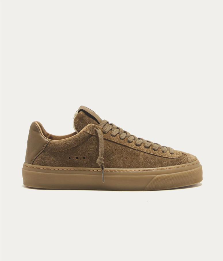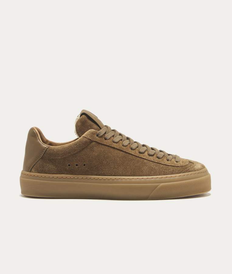 Sneaker in suede marrone dal design minimalista ed elegante. Realizzata con materiali selezionati per offrire comfort e qualitร .