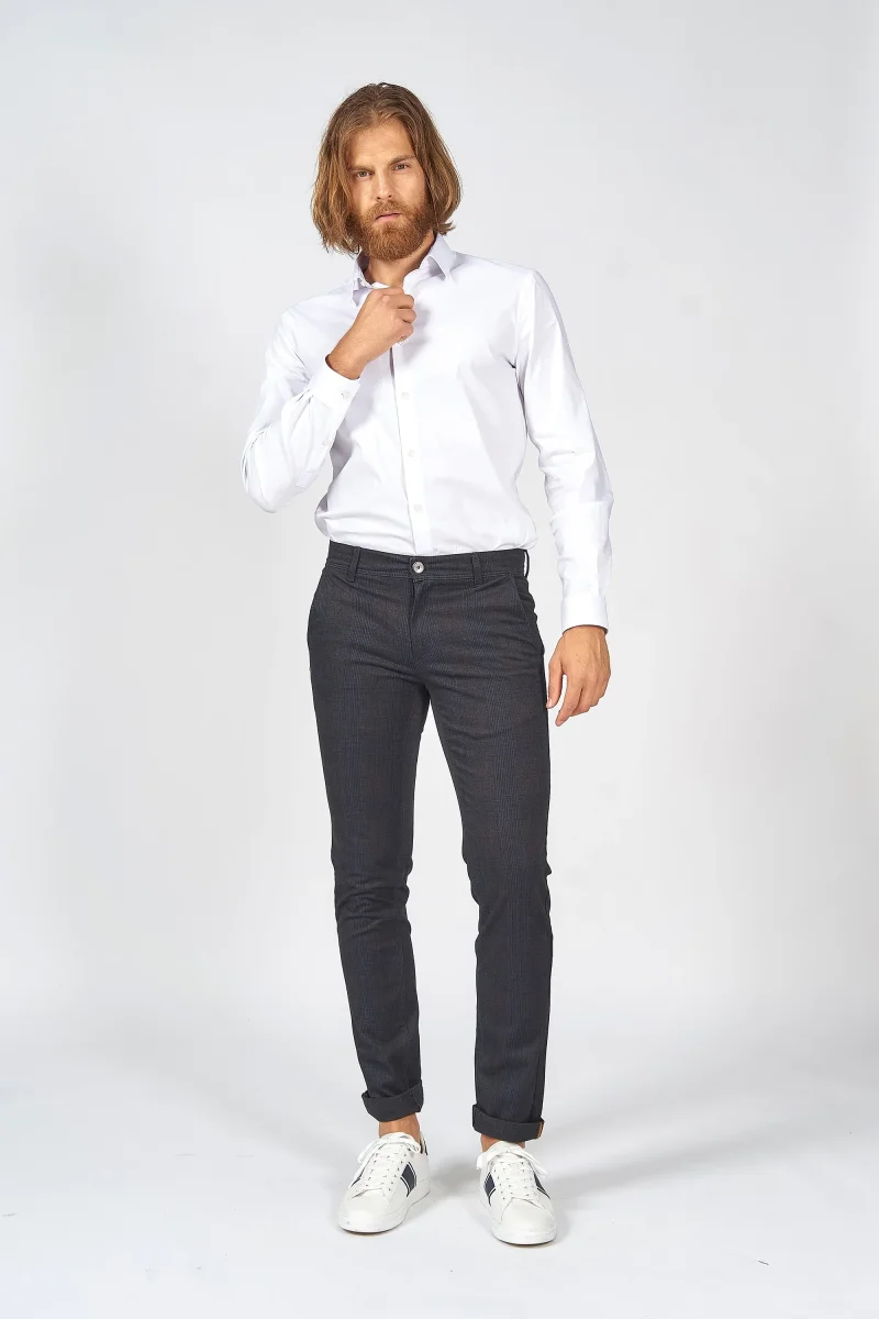 - Pantalone chinos in cotone stretch peso invernale disegno scozzese