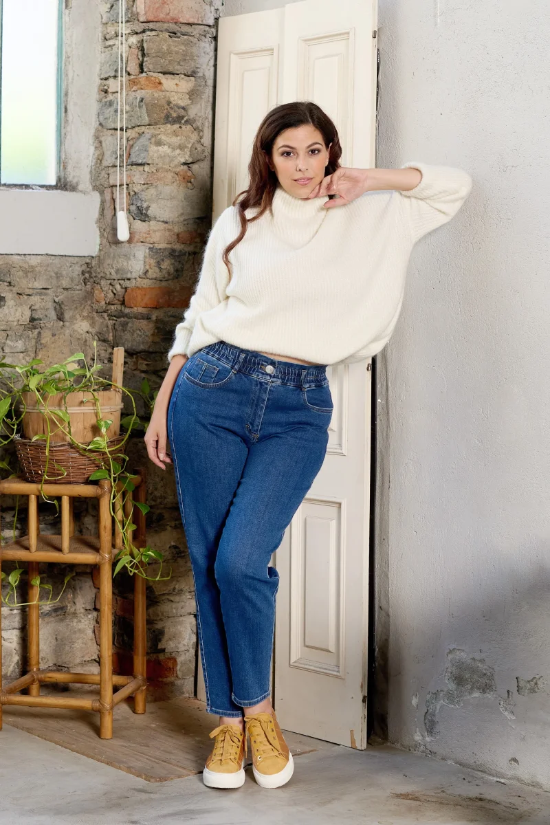 Jeans Donna Relax Fit A vita alta elasticizzata con arricciature Soft-Denim stretch Peso tessuto: autunno/inverno Pantalone 5 tasche in jeans in cotone stretch, con vestibilitร morbida. Questo modello รจ costruito con vita media elasticizzata per la massima comoditร . La forma del pantalone non aderente e attuale dona comoditร . Dallโattitudine leisure e comfort questo pantalone si […]
