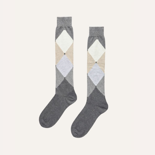 Questa calza in cotone si contraddistingue per l’iconico intarsio a rombi, capace di impreziosire qualsiasi look.