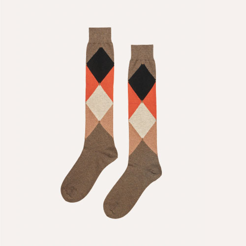 Questa calza in cotone si contraddistingue per l’iconico intarsio a rombi, capace di impreziosire qualsiasi look.