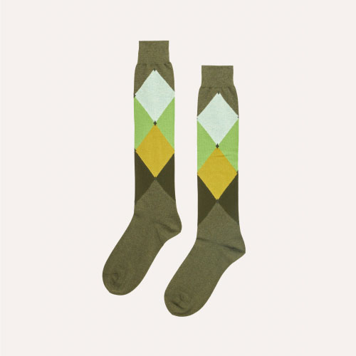 Questa calza in cotone si contraddistingue per l’iconico intarsio a rombi, capace di impreziosire qualsiasi look.