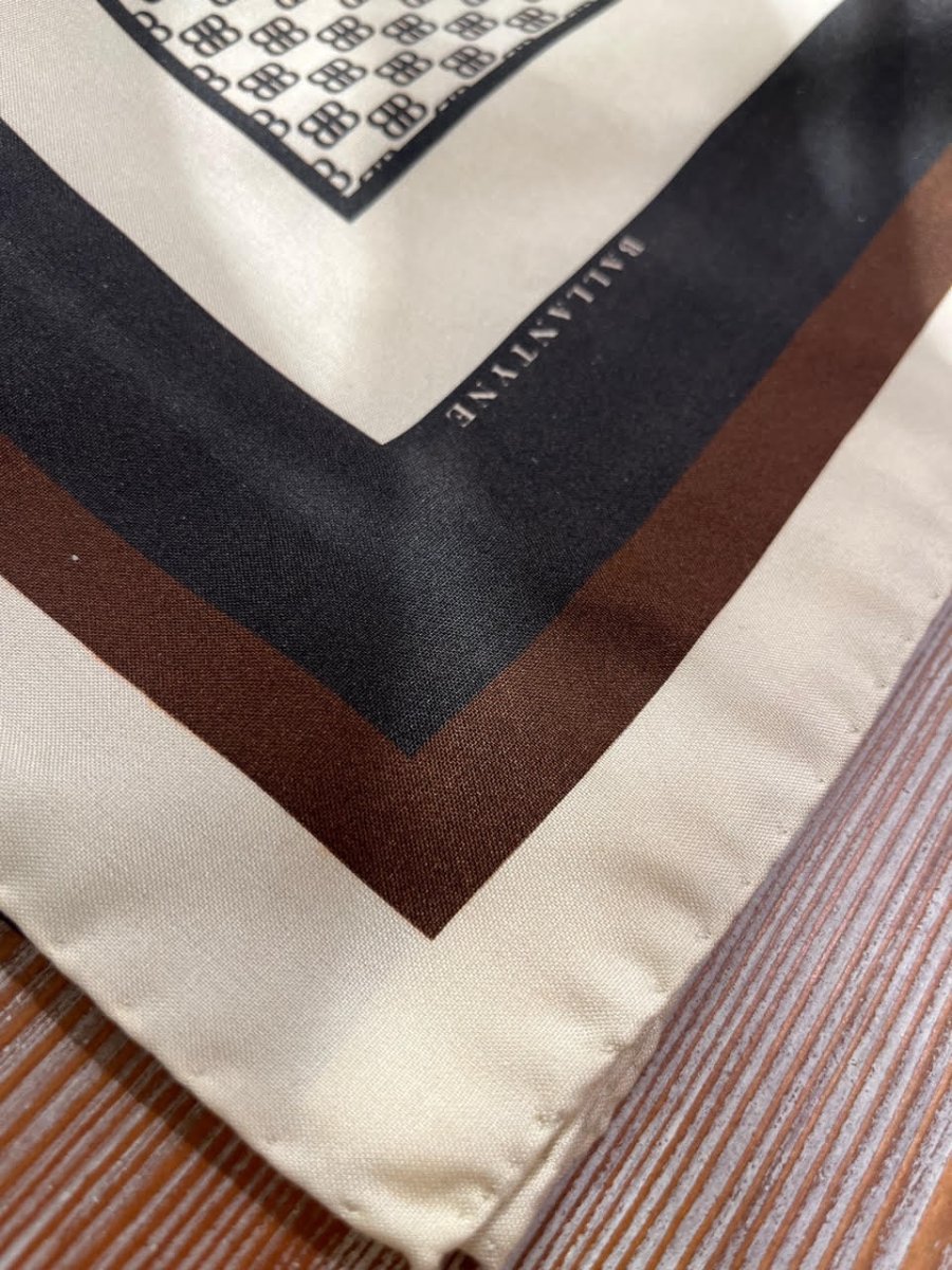 La preziosa seta incontra la stampa monogram di Ballantyne in questo foulard dal gusto british.