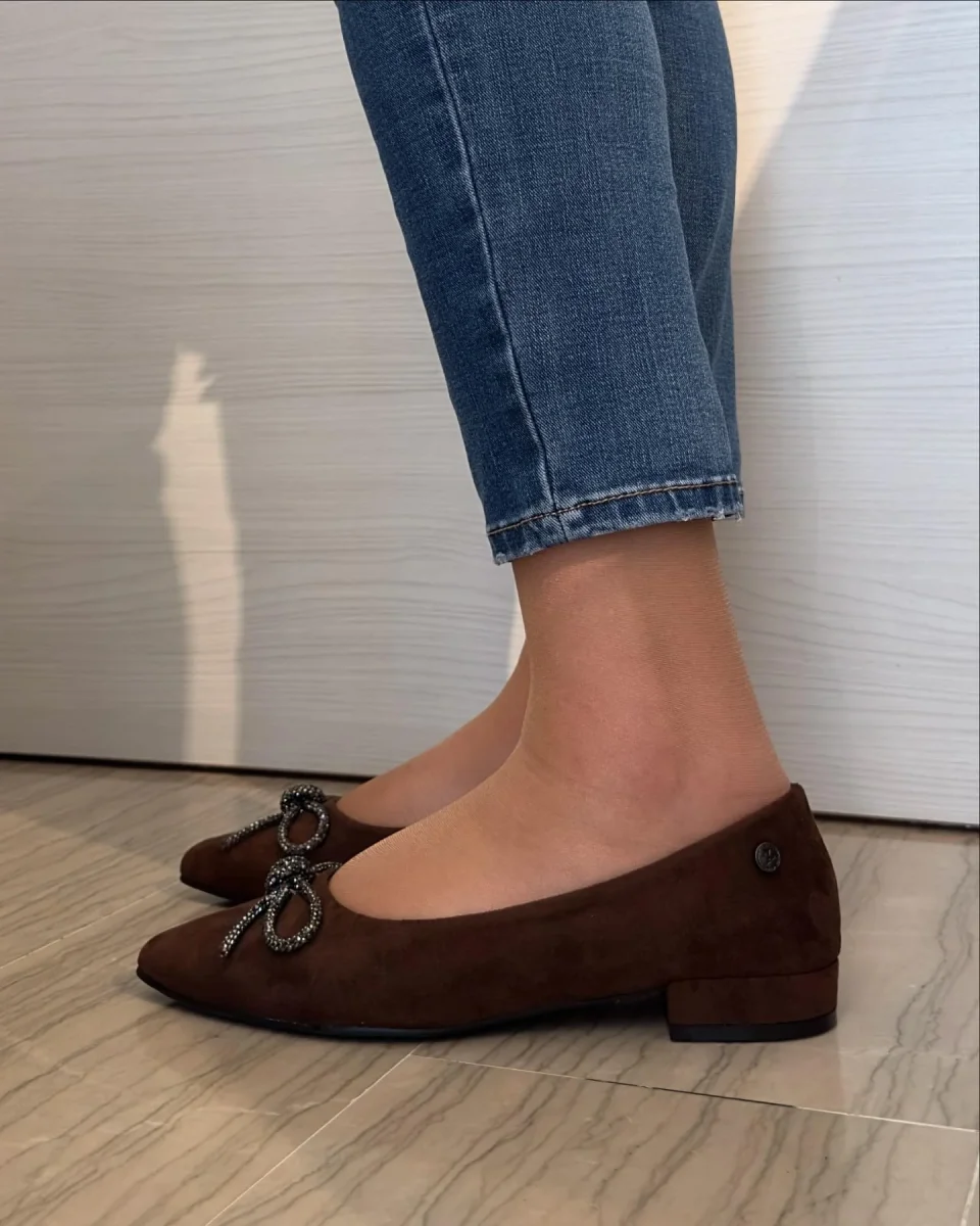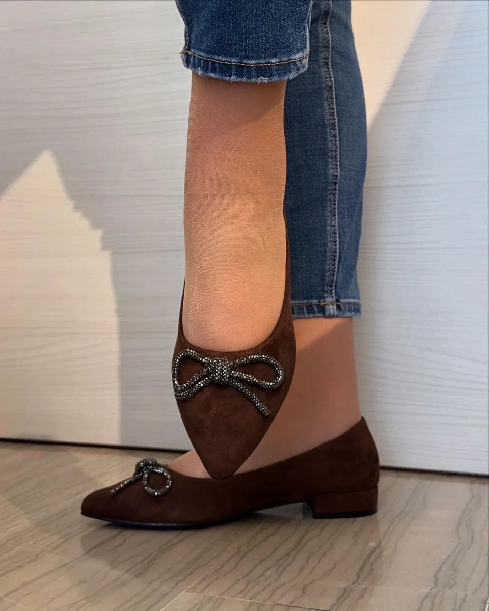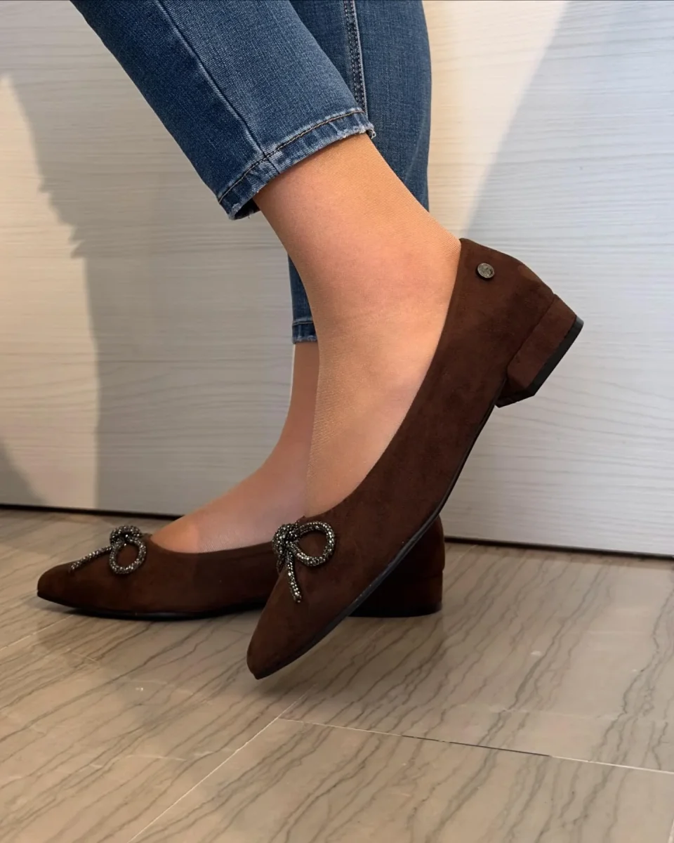 Ballerina Xti scamosciata marrone!Fiocco ๐ molto luminosoTacco tono su tono Morbido plantare in memory e tessuto molto morbidoPerfetta da abbinare sia a outfit eleganti che casual