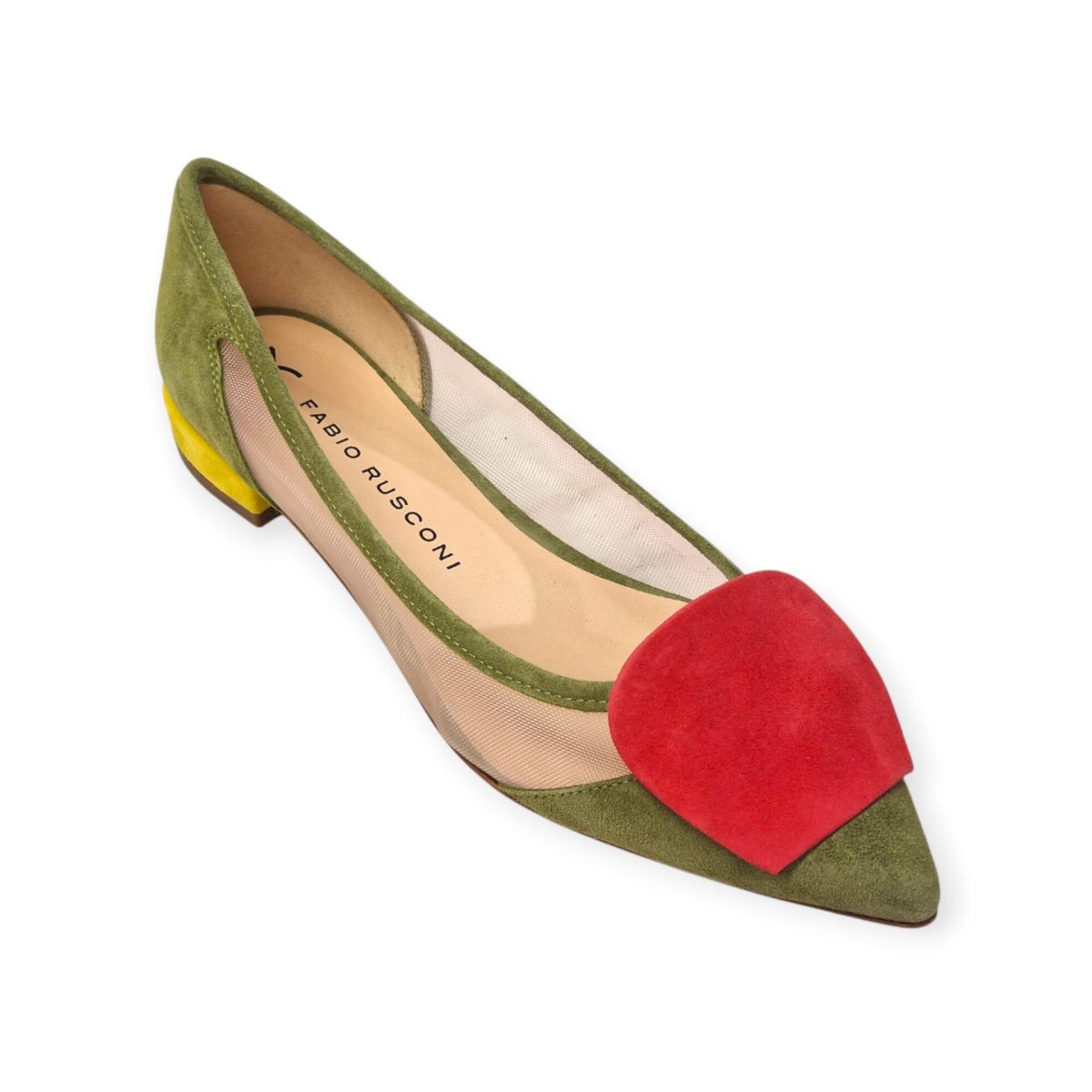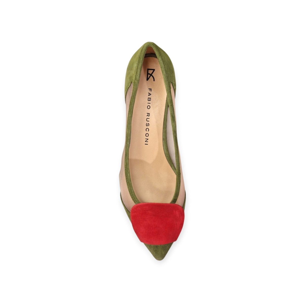 BALLERINE “Yoshiko – Fabio Rusconi” IN MICRO RETE E SUEDE VERDE/ROSSO 10 mm