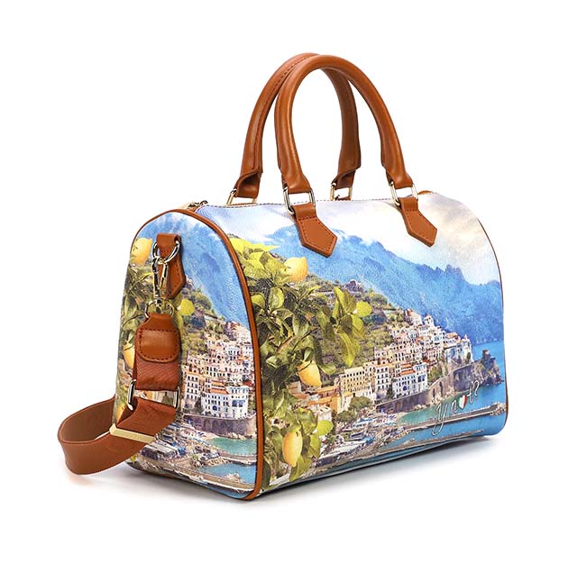 Bauletto Donna medio a mano in goffrato, con tracolla regolabile e rimovibile. Unico scomparto foderato e organizzato chiuso con zip e con taschine applicate.