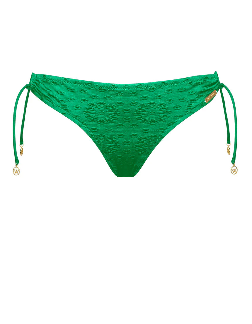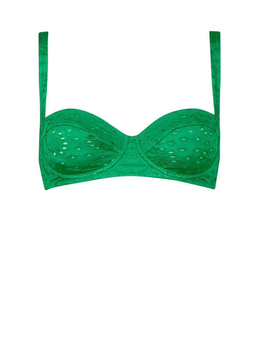 Trasparenze infuse dal sapore artigianale caratterizzano questi modelli di costumi da bagno che si integreranno nel guardaroba estivo. La decorazione delle superfici diventa fondamentale nella collezione. I look lingerie si fondono con i tessuti per il mare e danno vita a jacquard ispirati al ricamo sangallo. Delicate trasparenze lasciano intravedere sottili scorci di pelle. Le forme del bagno restano in contrasto con questo look altamente femminile. Le loro silhouette moderne e grafiche trasformano lo stile in una nuova finta storia uni contemporanea che รจ potente e femminile allo stesso tempo. Reggiseno bikini a balconcino con ferretto e busto foderato. Cinghie regolabili in lunghezza, rimovibili nella parte posteriore per opzioni di indossaggio variabili. Chiusura a clip nella parte posteriore. Completamente foderato.Slip bikini con taglio gamba variabile, regolabile in larghezza tramite lacci. Completamente foderato.