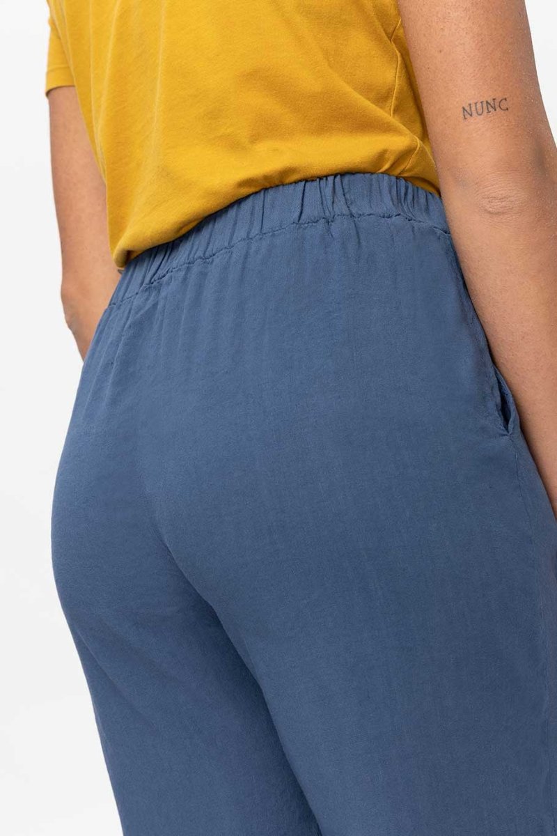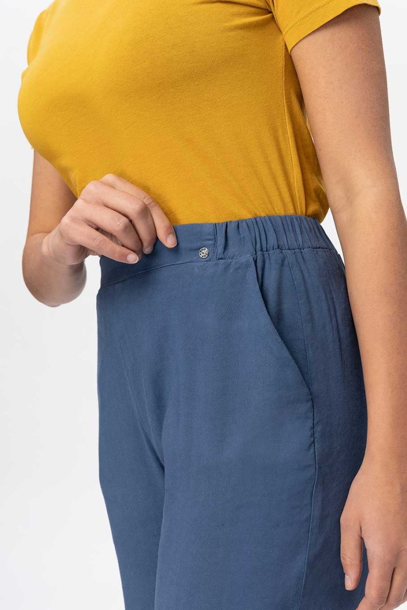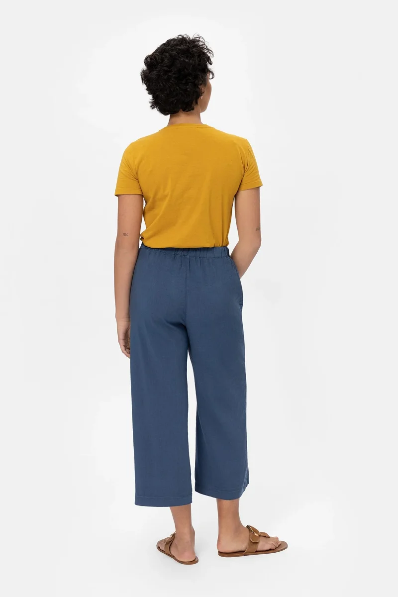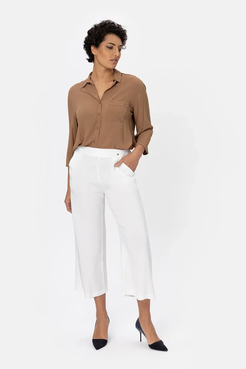 Pantalone cropped in lino super stretch. Il tessuto lino viscosa unisce la freschezza delle due fibre, alla comoditร data dallo stretch del tessuto. Pantalone ampio dalla vita media con elastico cintura dietro e tutto chiuso, senza zip e bottoni. Attuale dona comoditร e freschezza. Disponibile in diversi colori: dai piรน classici ed eleganti a quelli piรน vivaci e sgargianti. Un pantalone morbido, quotidiano e fresco per le giornate piรน calde. Un must have per lโestate.