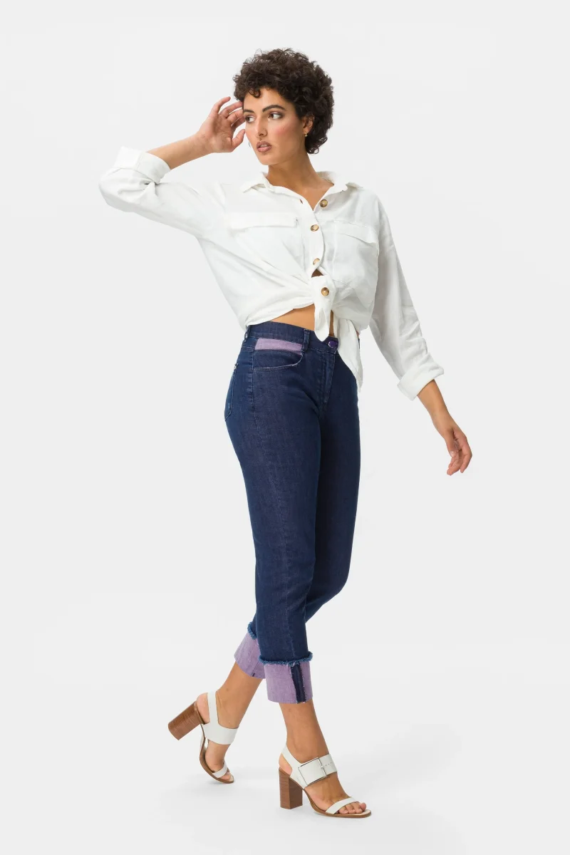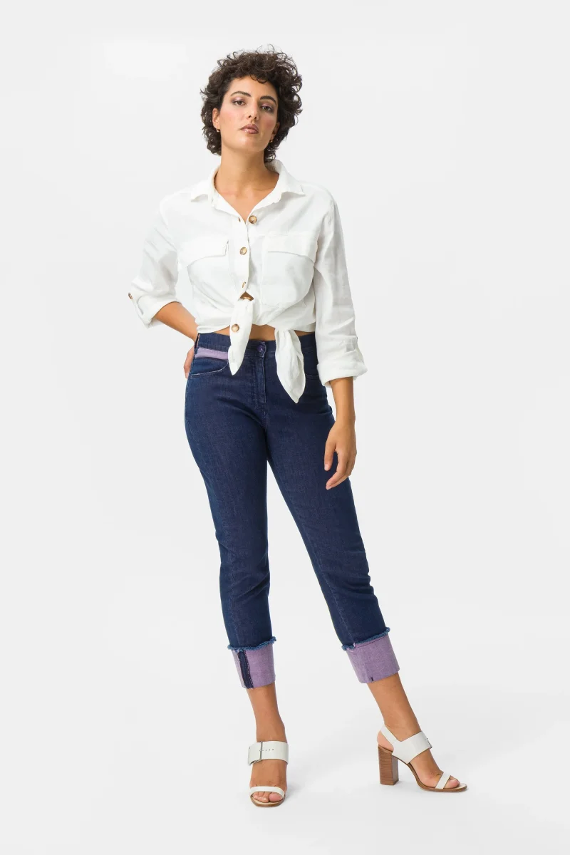 Jeans Donna con risvolto colorato