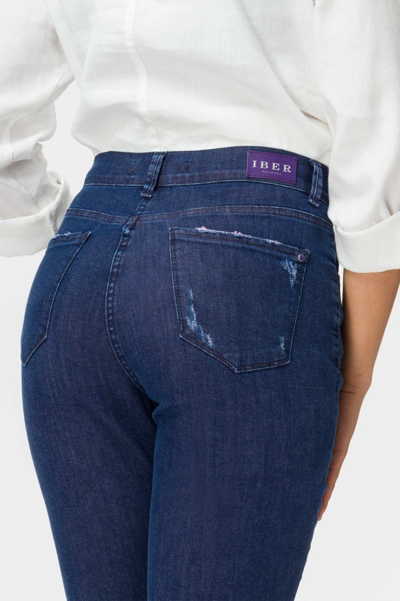 Jeans Donna con risvolto colorato Denim super stretch Peso tessuto: primavera/estate Jeans denim blue con rovescio lilla. Risvolto sfrangiato e dettagli colorati, abrasioni e fit regolare. Questo modello รจ costruito con vita media elasticizzata con zip e bottone. Pratiche tasche donano massima comoditร . Un jeans moderno, quotidiano da abbinare ad una sneaker o un tacco. […]