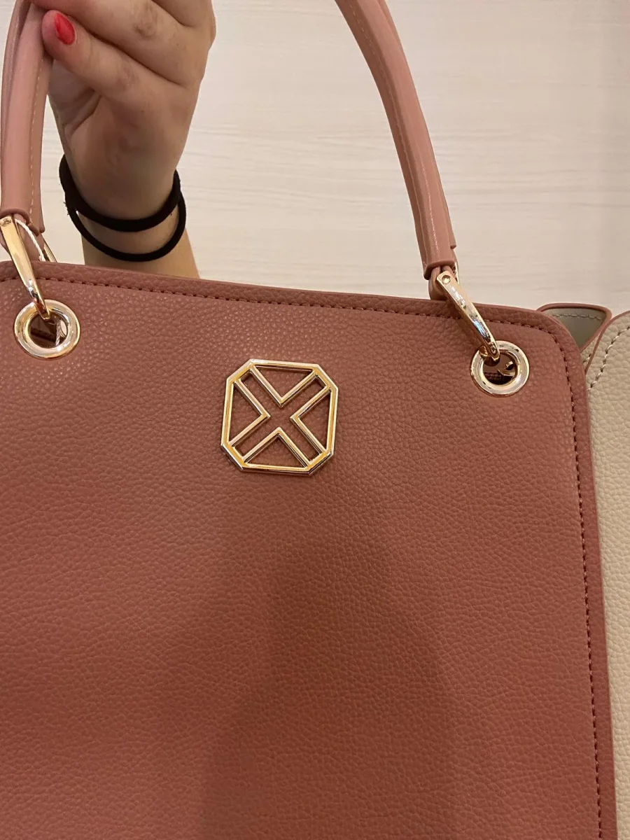 BORSA A SPALLA DONNA XTI BICOLORE ROSA E BEIGE