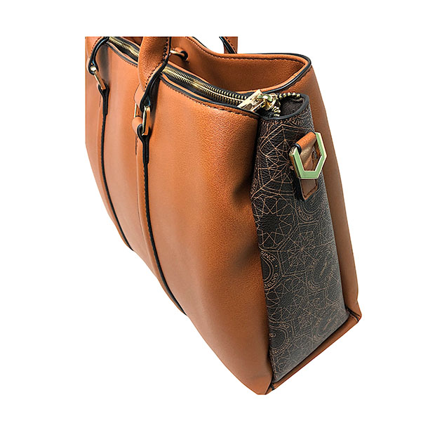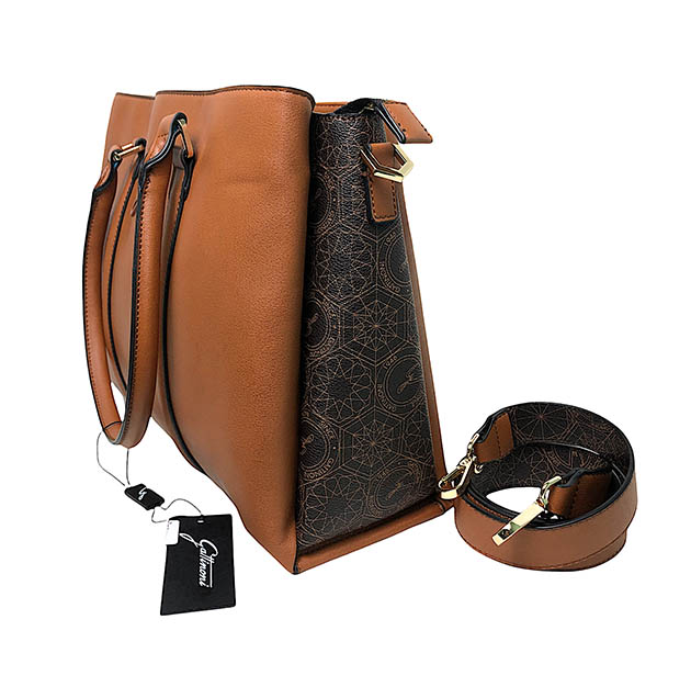 Borsa donna a mano e a tracolla di Gattinoni Roma color cuoio e marrone.