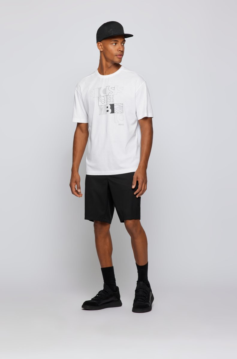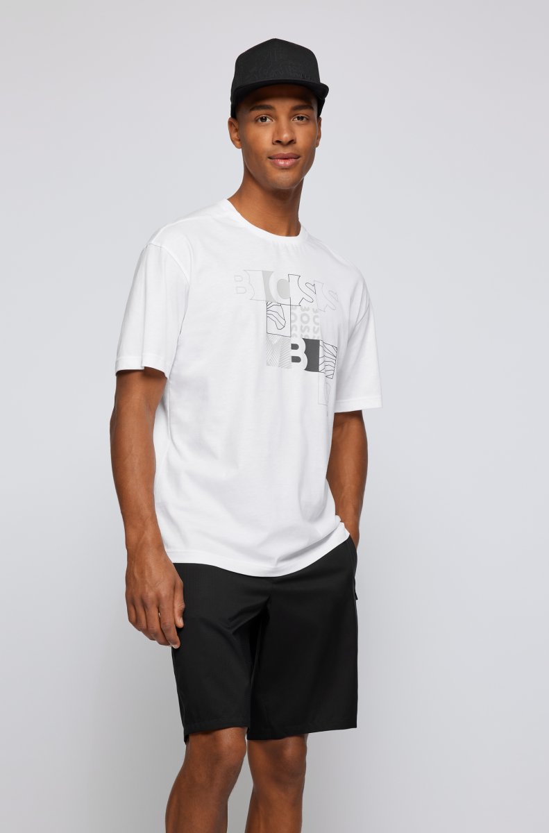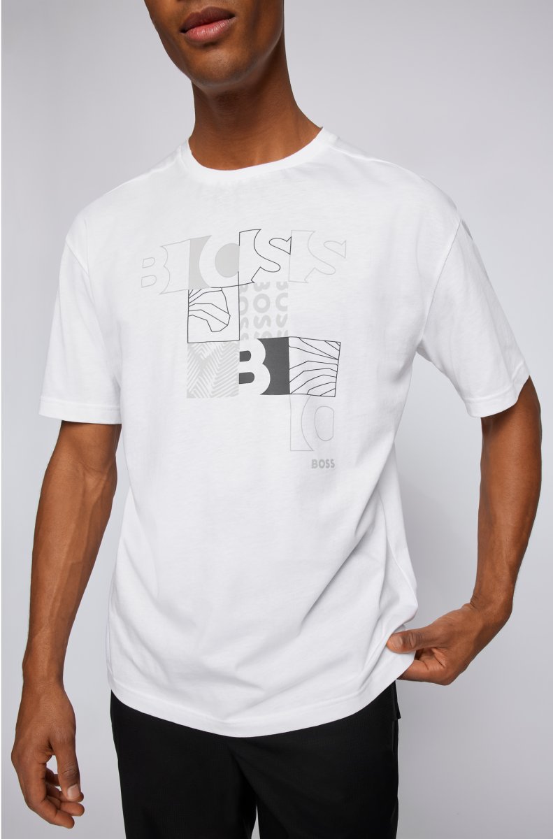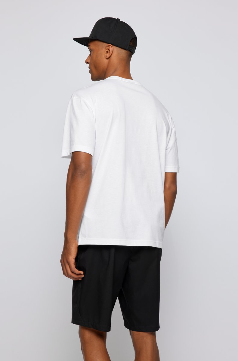 BOSS T-SHIRT IN JERSEY DI COTONE CON GRAFICA CON LOGO_BIANCO