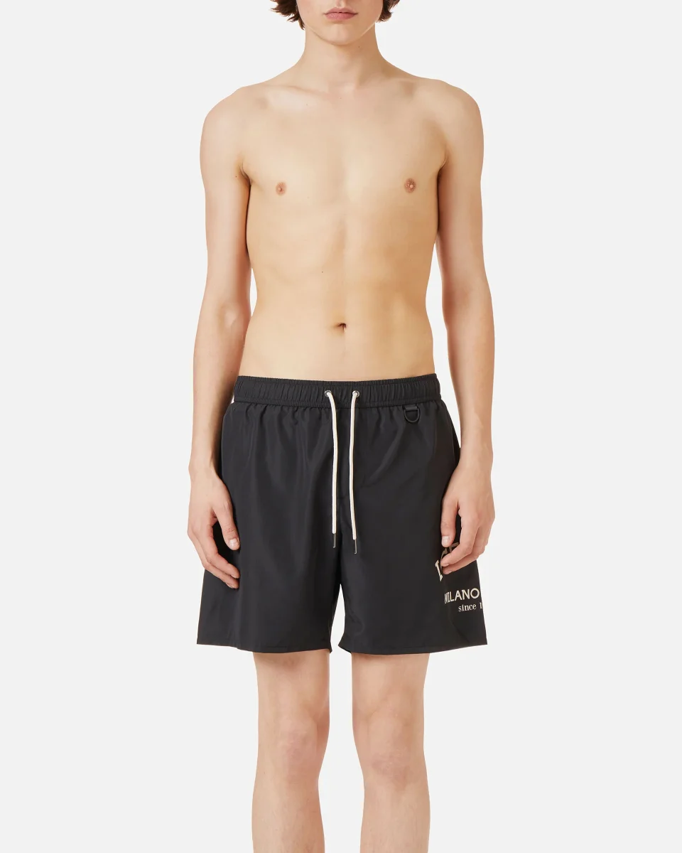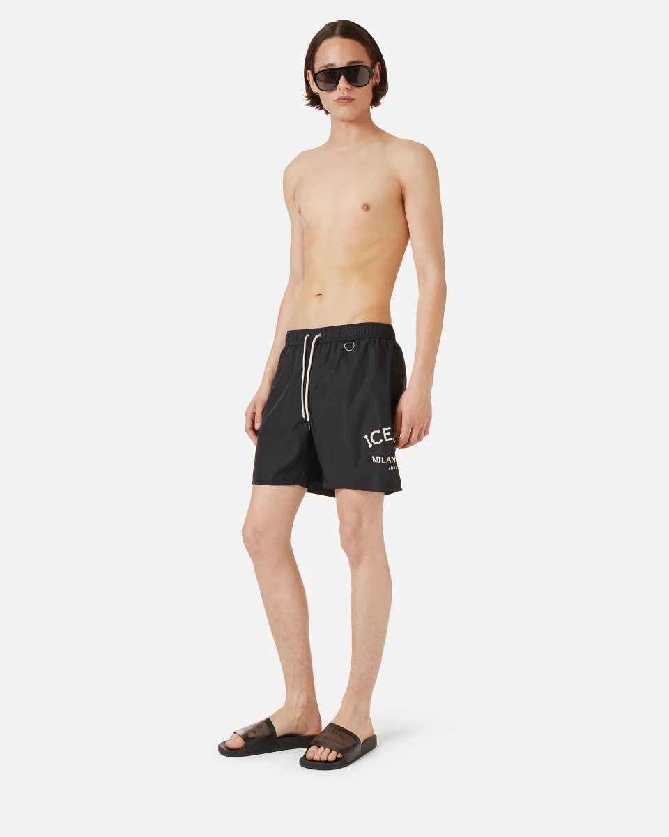 Eleganza sportiva e stile distintivo si uniscono in questo boxer mare nero, arricchito dal logo Iceberg istituzionale a contrasto sulla gamba. La coulisse in vita garantisce una vestibilitร regolabile, rendendolo perfetto per chi cerca un look fresco e dinamico senza rinunciare a un tocco di classe.