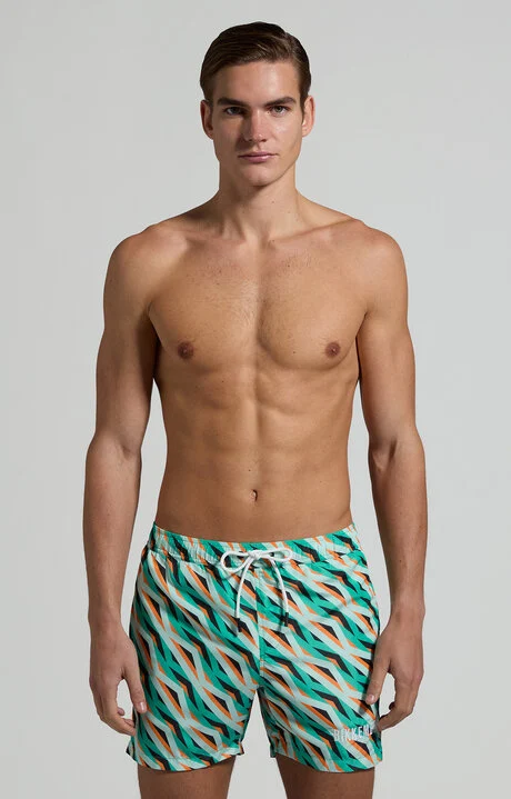 DETTAGLI Ripiegabili nel loro taschino laterale dotato di occhiello traspirante e chiusura magnetica, questi boxer mare salvaspazio da uomo sono personalizzati da una stampa optical. Il costume presenta una vita elasticizzata con coulisse. COMPOSIZIONE E LAVAGGIO 100% PL LAVARE A MANO; NOME PRODOTTO MBM13