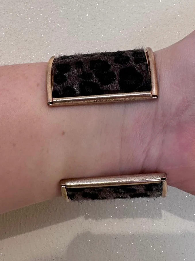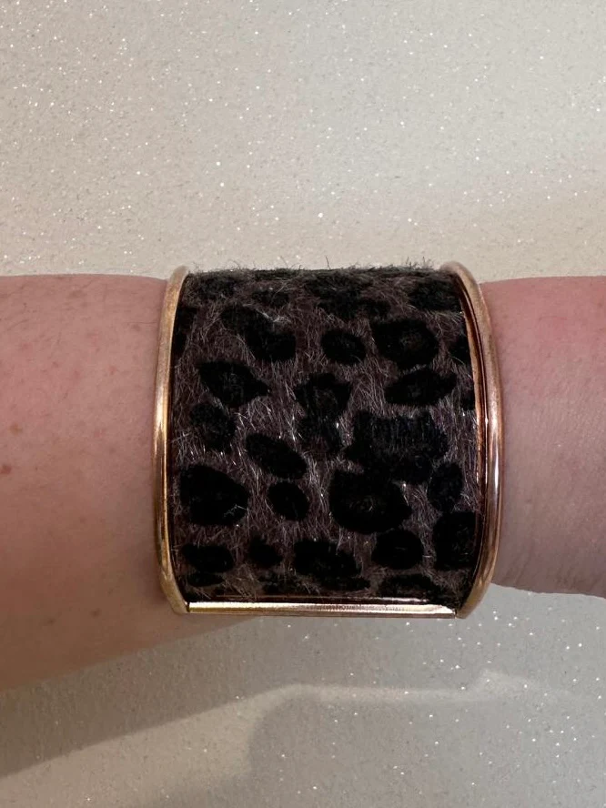 Bracciale rigido da donna dal design leopardato, un accessorio elegante e di tendenza pensato per valorizzare qualsiasi look femminile. La base color oro dona luminositร e raffinatezza, mentre la finitura animalier leopardata aggiunge un tocco deciso e glamour, perfetto per chi ama distinguersi con stile.