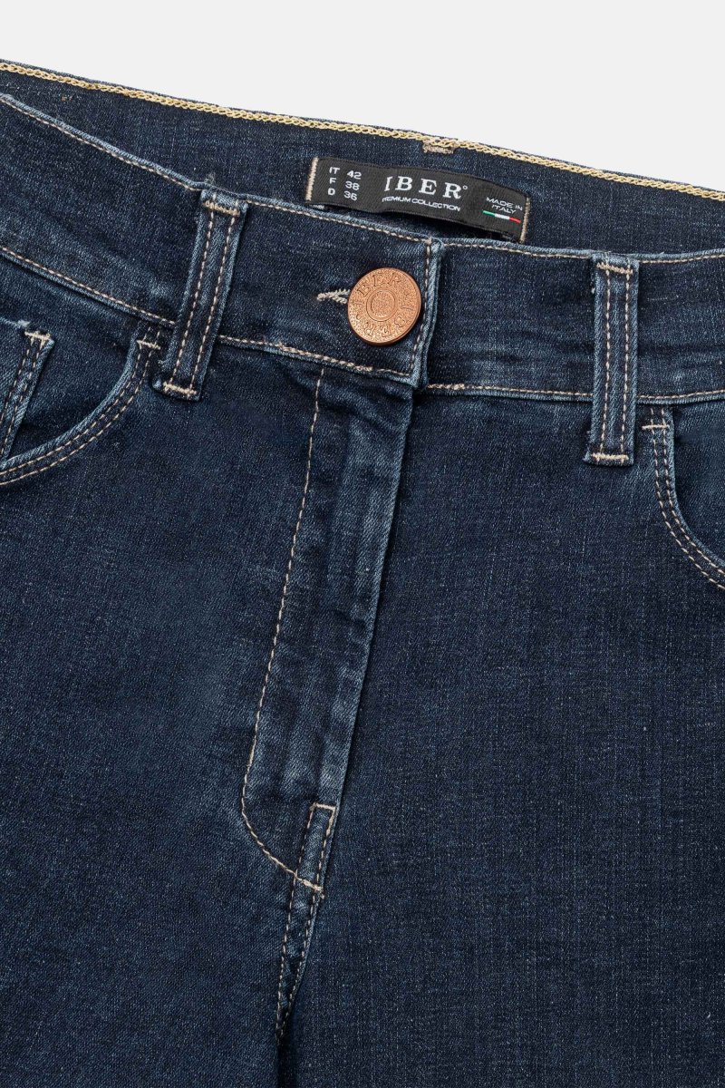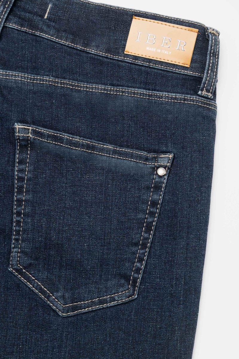 Jeans Donna Slim Denim super stretch Peso tessuto: 4 stagioni Jeans denim blue super stretch con vestibilitร slim e risvolto al fondo. Questo modello รจ costruito con vita media elasticizzata, chiusura con zip e bottone, pratiche tasche. Un jeans sportivo, versatile e quotidiano, abbinalo ad una sneaker o ad uno stivaletto basso. I prodotti Iber […]