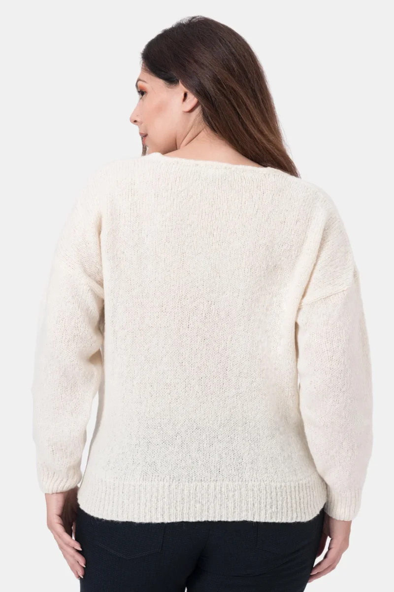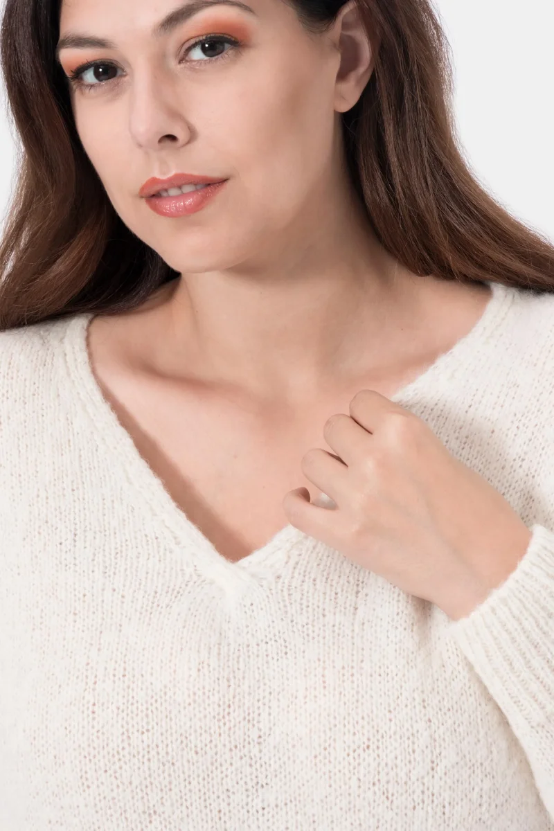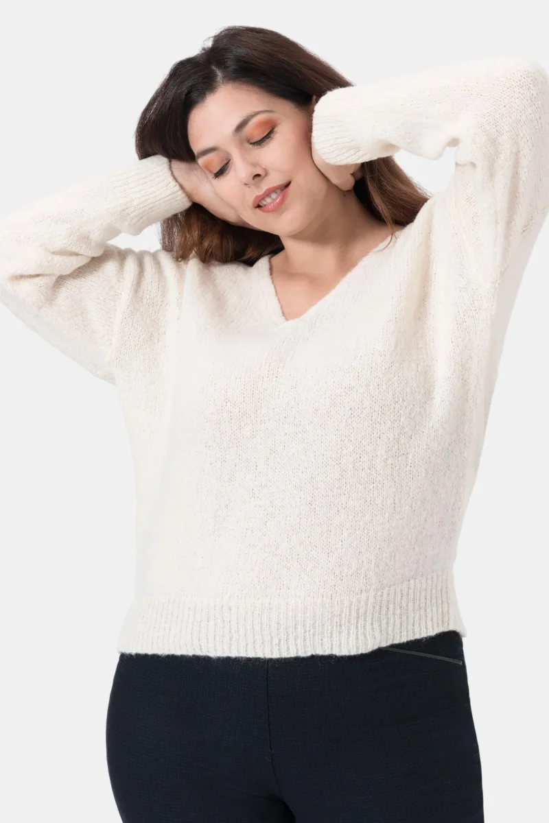 Caren maglia Scollo a V in Alpaca e Merinos Ultrasoft Bianco