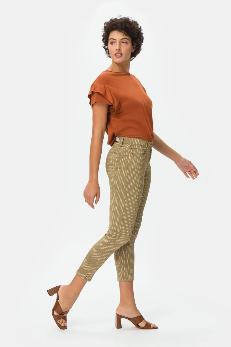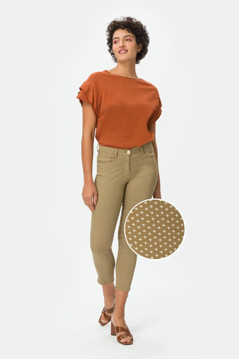 Pantalone Donna SlimCotone super stretch Peso tessuto: primavera/estate Pantalone slim in cotone super stretch con micro fantasia. Fit slim, lunghezza sopra la caviglia con chiusura zip e bottone. Questo modello รจ costruito con vita elasticizzata, con comode tasche e pences per una vestibilitร perfetta. La forma del pantalone aderente segue la figura e slancia la […]