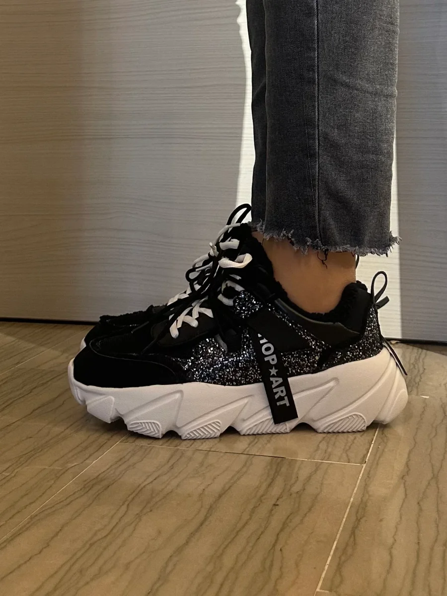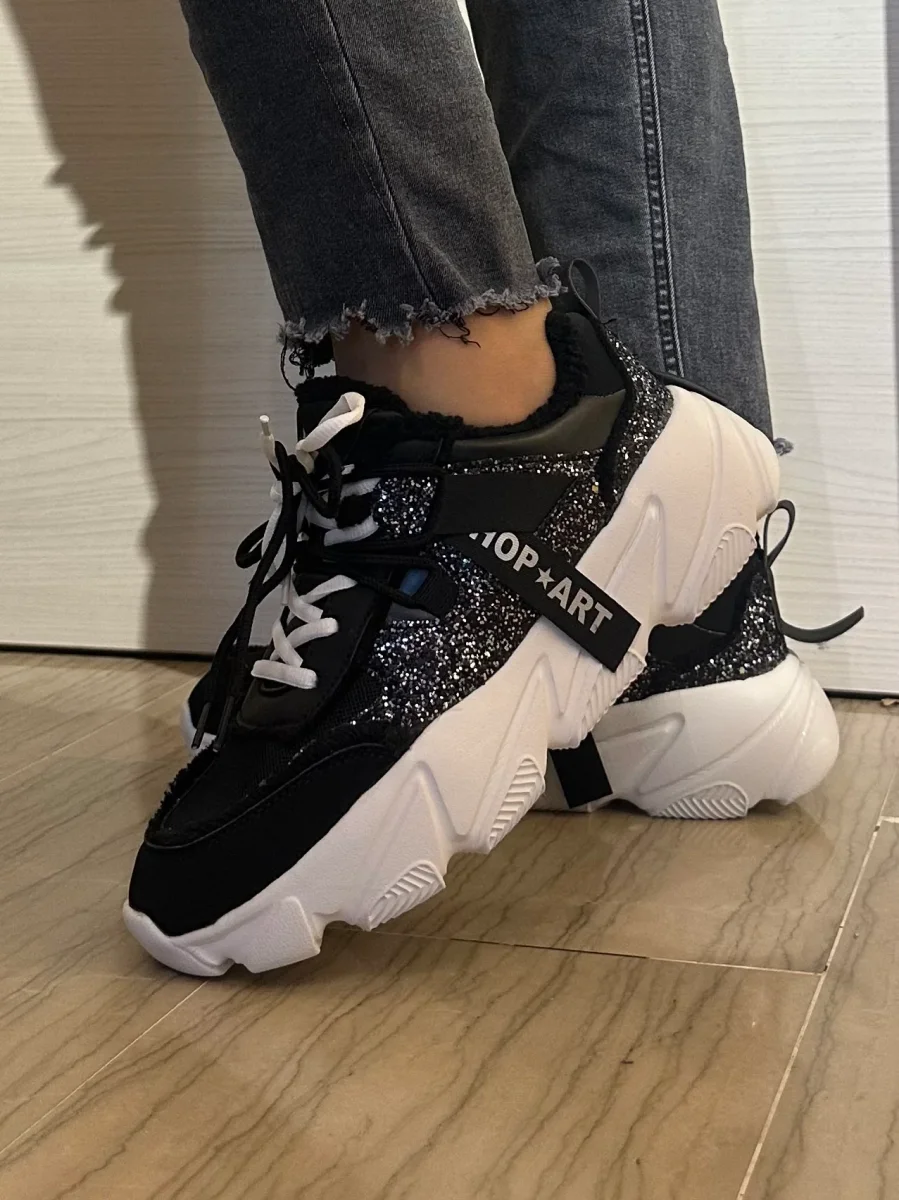 CHUNKY AMY SHOP ART SNEAKER NERA E BIANCA CON STRASS