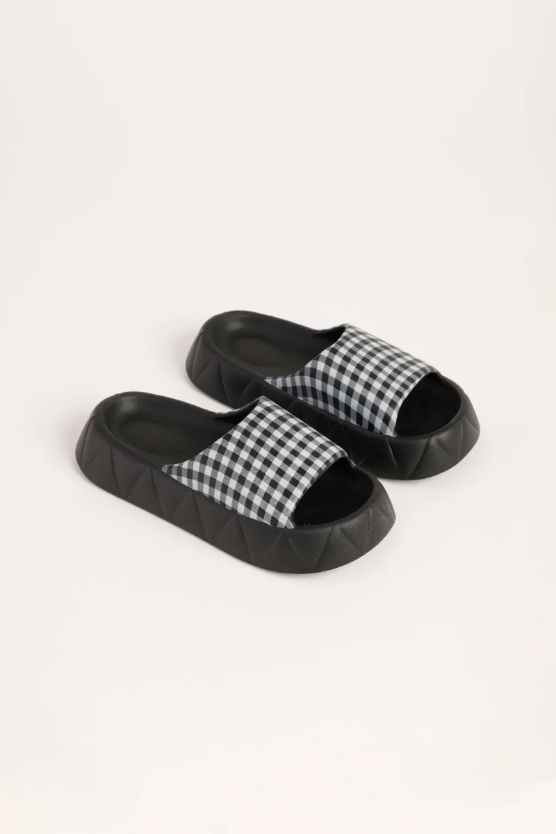 Ciabatta donna gomma gumacu suola inferiore e superiore in tinta unita e banda con stampa maculata. Altezza suola 4 cm