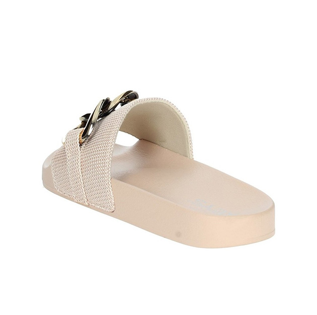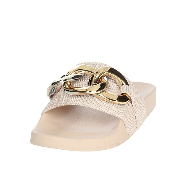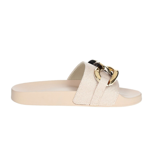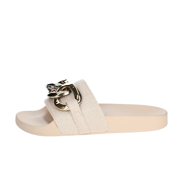 Ciabatta Donna cipria in gomma, con fascia glitter impreziosita da dettaglio catena in metal gold. Comode e pratiche, senza rinunciare al glamour.