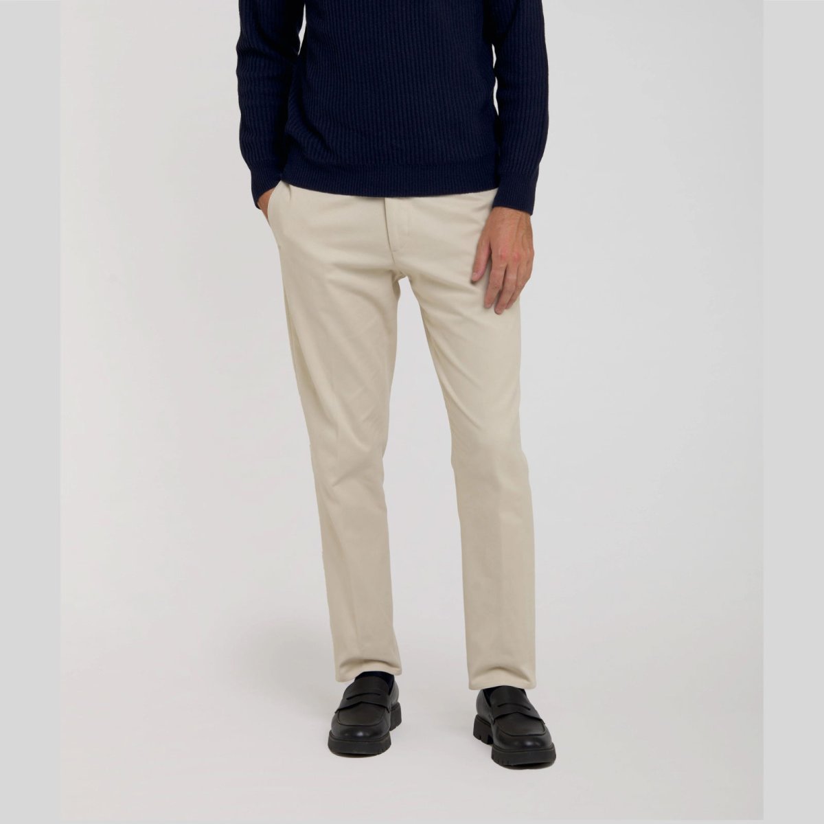 Cruna Pantaloni chino regular fit in tessuto Panama di puro cotone sabbia