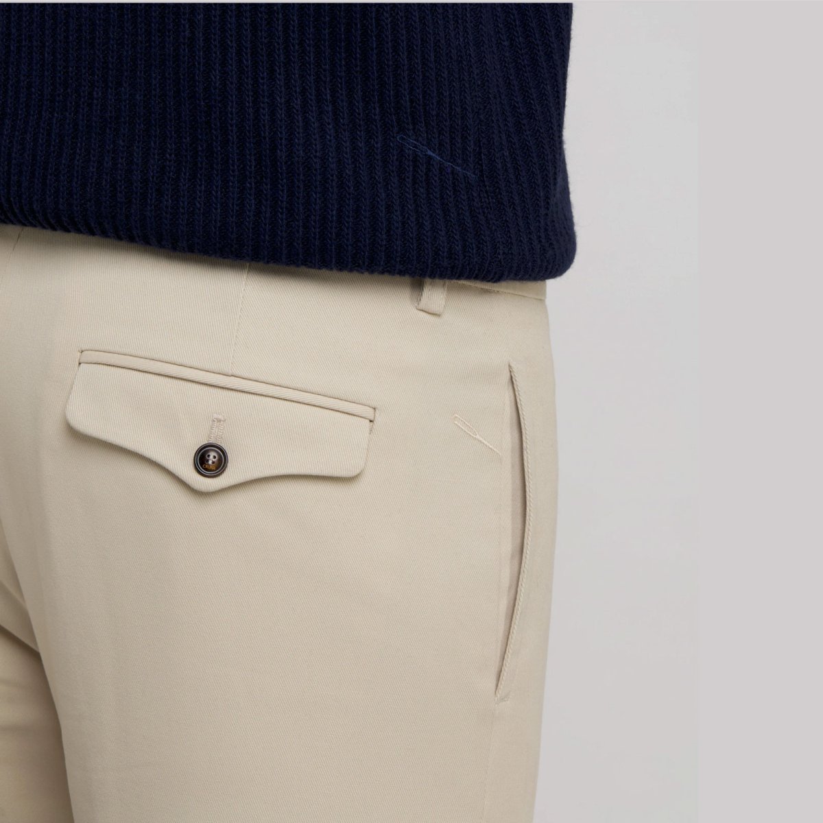 Cornell รจ un pantalone chino dal fit regular con gamba dritta. Realizzato in Panama di puro cotone, un tessuto leggero e traspirante dalla particolare tramatura, Cornell รจ un pantalone che dona comfort e freschezza anche durante le calde giornate estive. Questo modello chino si contraddistingue per dettagli ricercati come il taschino porta monete e le tasche differenti tra loro sul retro.