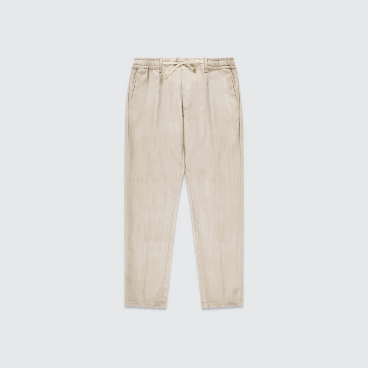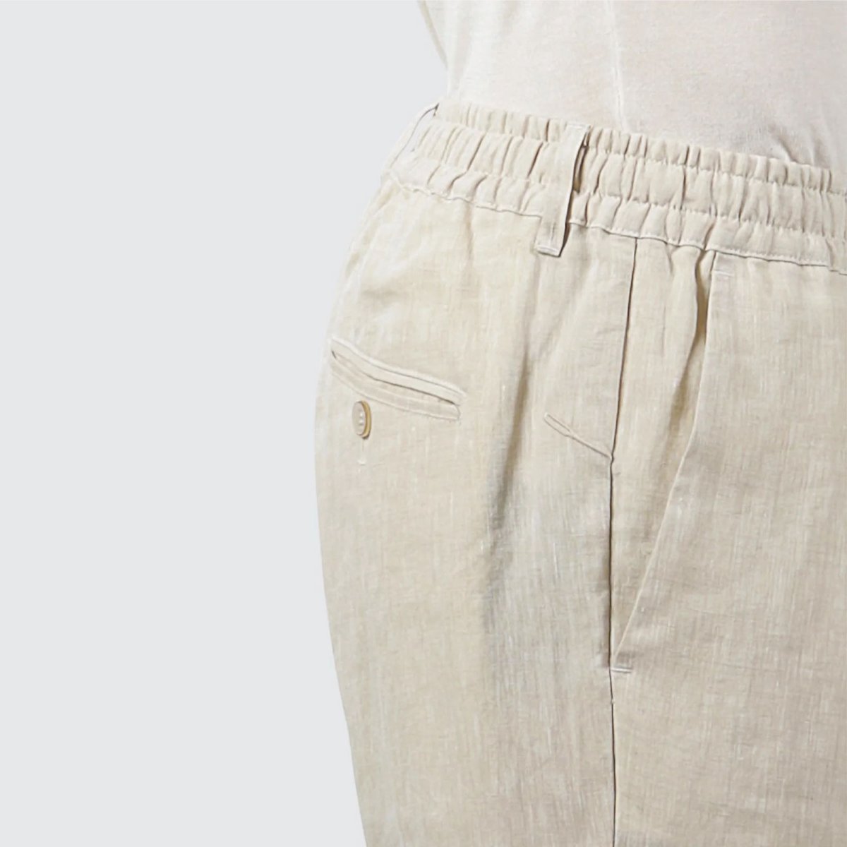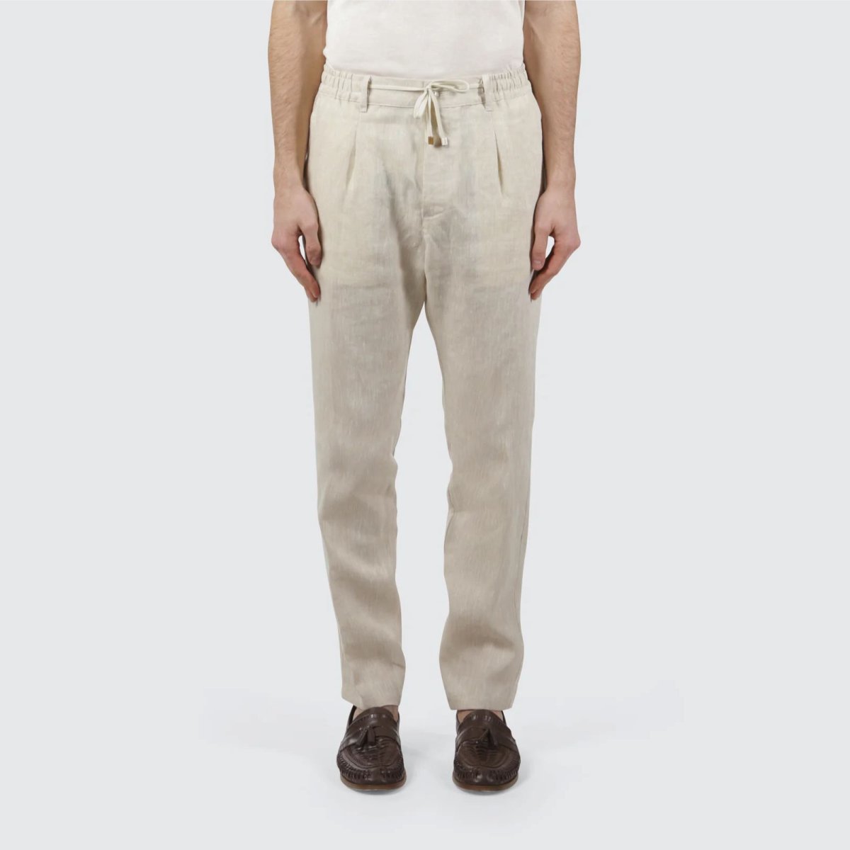 Cruna Pantaloni tapered fit con elastico in vita e coulisse a scomparsa in tela di lino leggero ecrù