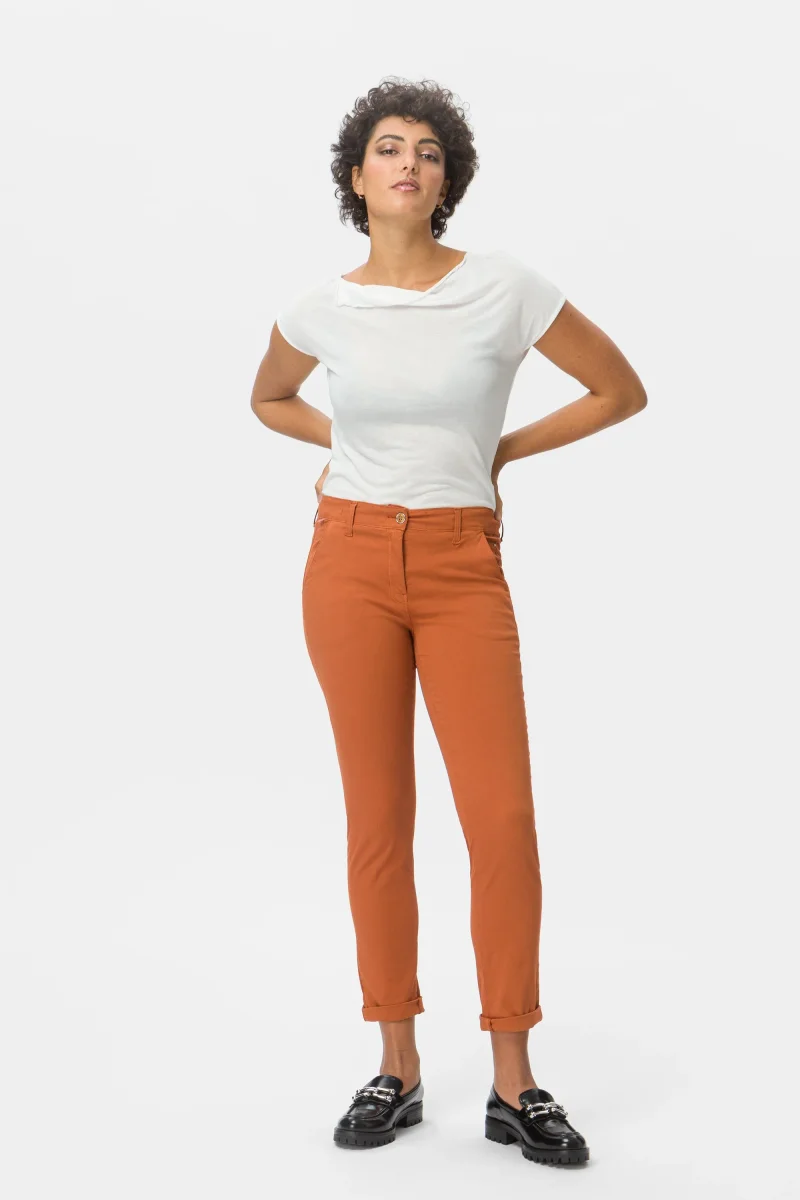 Pantalone Cinos Donna Slim Cotone super stretch Peso tessuto: primavera/estate Pantalone cinos dalla vestibilitร slim in tessuto di cotone super stretch, con risvolto al fondo, tasca a filetto sul retro, cintura interno fantasia e piccoli dettagli colorati e sfiziosi che lo caratterizzano. Un pantalone sportivo, versatile e quotidiano, disponibile in tante varanti colori fra cui […]