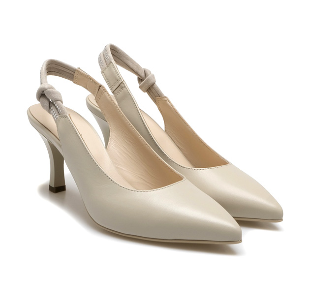 Décolleté Donna safari modello slingback in pelle, impreziosita da nodo laterale arricchito da piccoli strass. Stile glam-chic per questa scarpa dal design raffinato. Made in Italy.