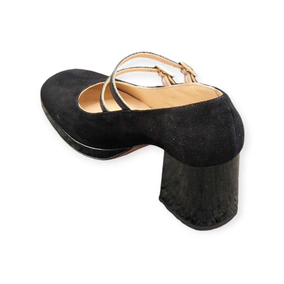E’ un divertente incrocio tra una Mary Jane con due cinturini e una décolleté con tacco a blocco. Unisce fascino vintage e vestibilità moderna. Raffinata e sensuale. Sperimentate una fusione di epoche e una splendida incarnazione del vostro stile.