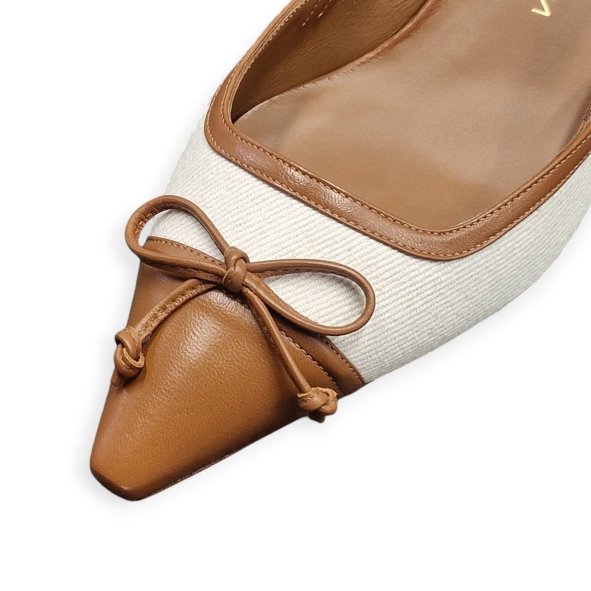 DÉCOLLETÉ “Slingback Kitty 50 – Stuart Weitzman” IN TESSSUTO E PELLE BEIGE/MARRONE 50 mm