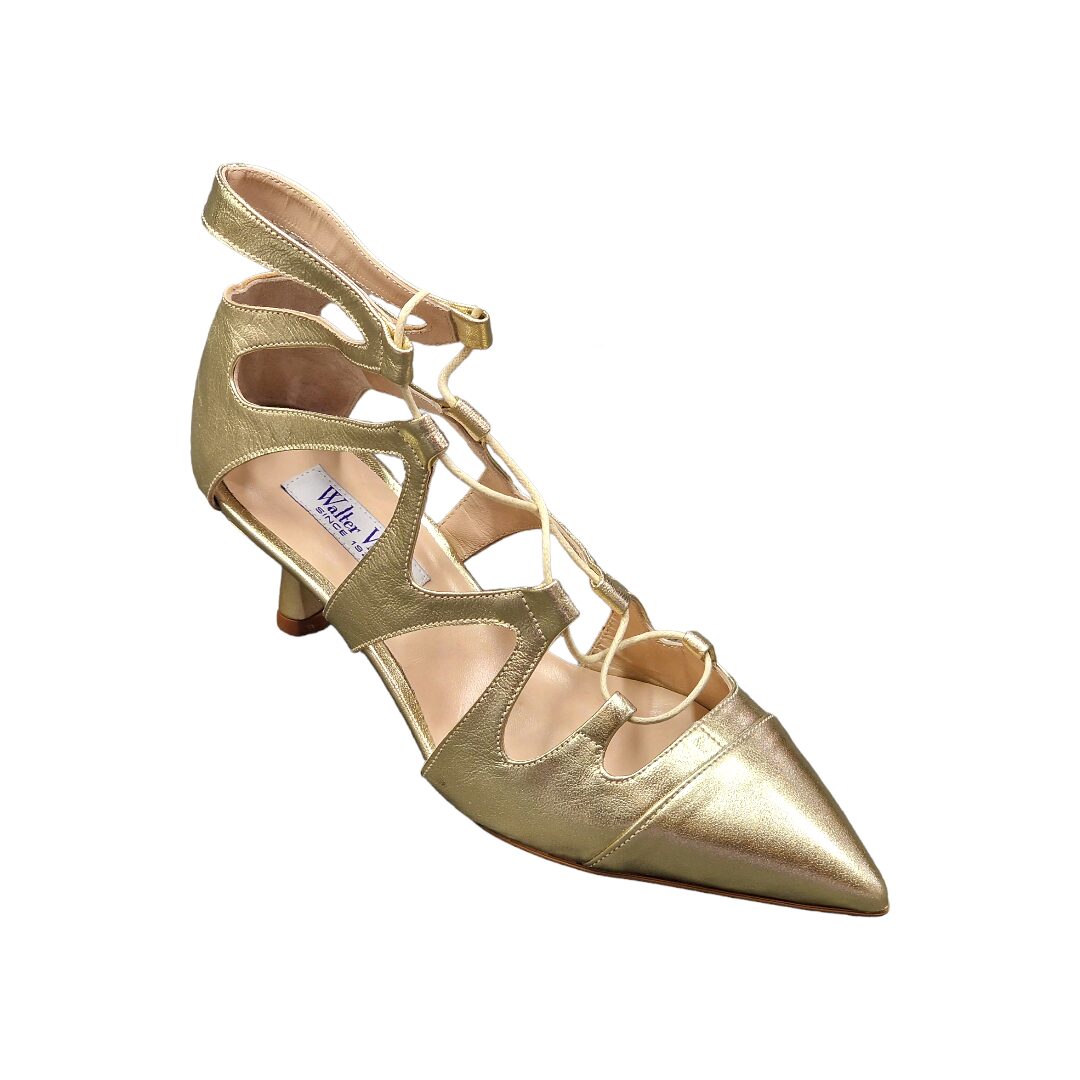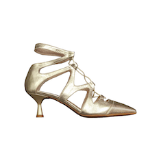 Dรฉcolletรฉ in morbida nappa, a punta con tacco midi ad rocchetto rivestito.