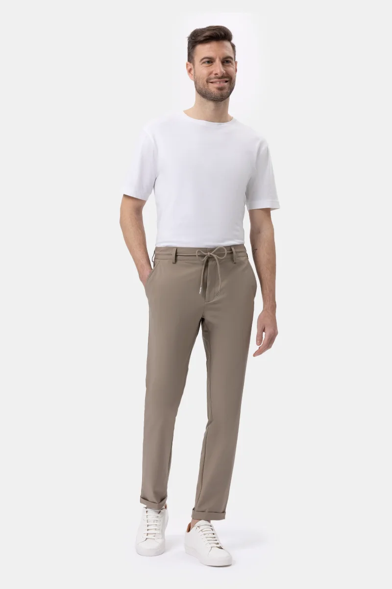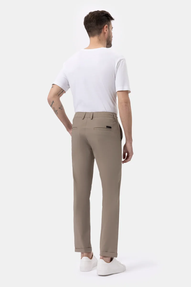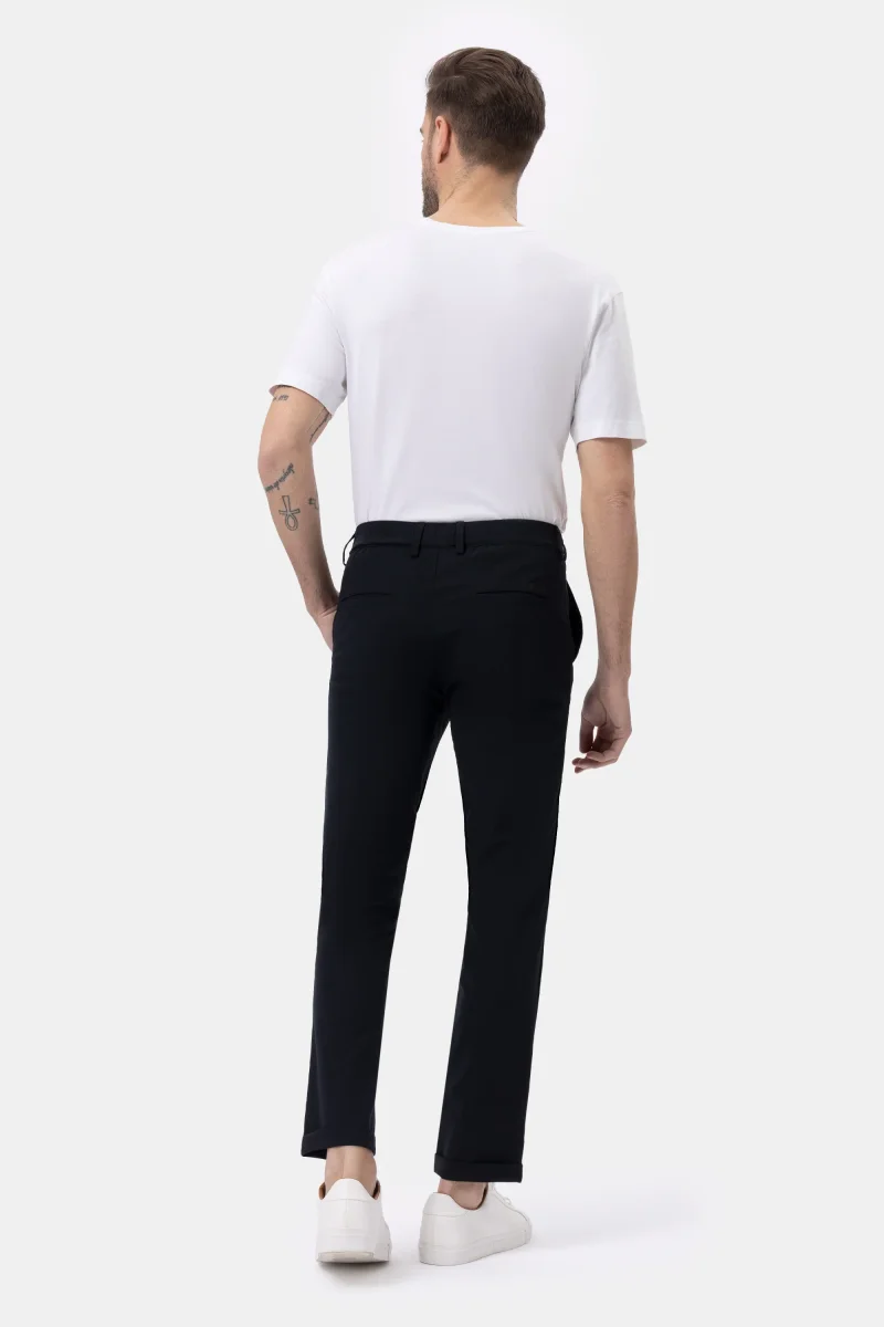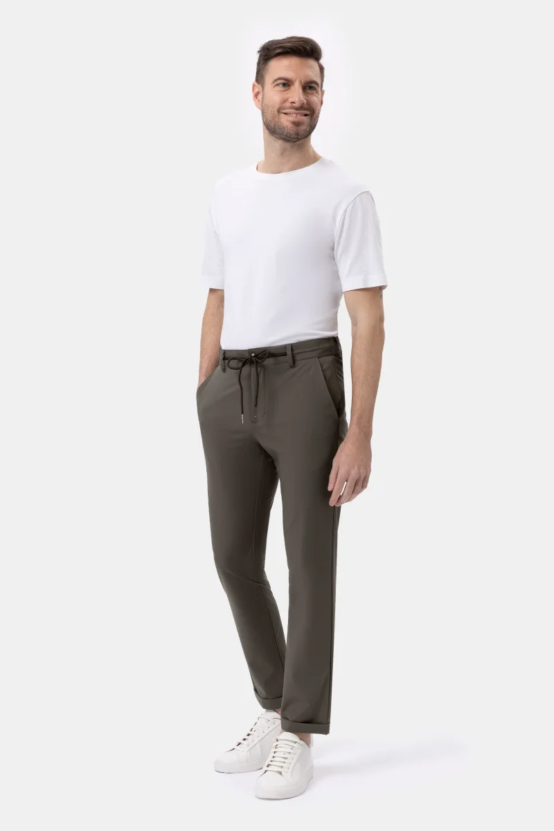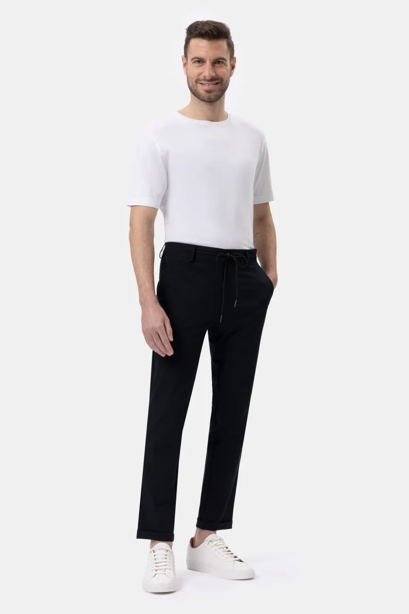 Questo modello, dal design contemporaneo e urban, presenta un fit morbido e confortevole, enfatizzato dalla cintura con passanti, regolata da una coulisse con finalini metallici opachi. Le tasche laterali alla francese e le posteriori a filetto sono impreziosite dall’iconico logo a microiniezione nera. Risvolto al fondo. L’esclusivo tessuto tecnico bi-stretch, fresco, traspirante e leggero, ha un look opaco e una texture piacevolmente liscia al tatto, esaltando la nitidezza del design. Le sue qualitร antipiega e no-stiro assicurano massimo comfort in viaggio e nel tempo libero.