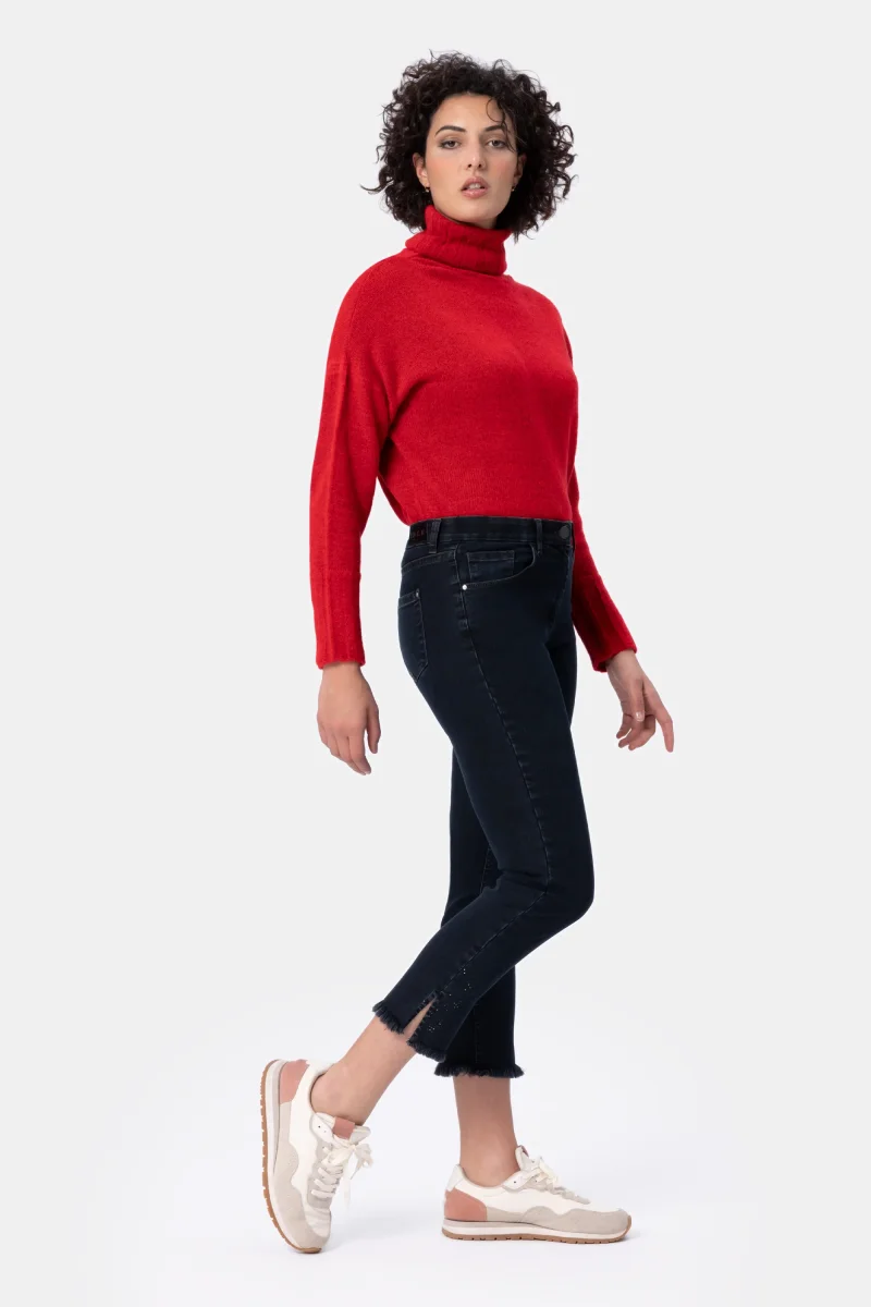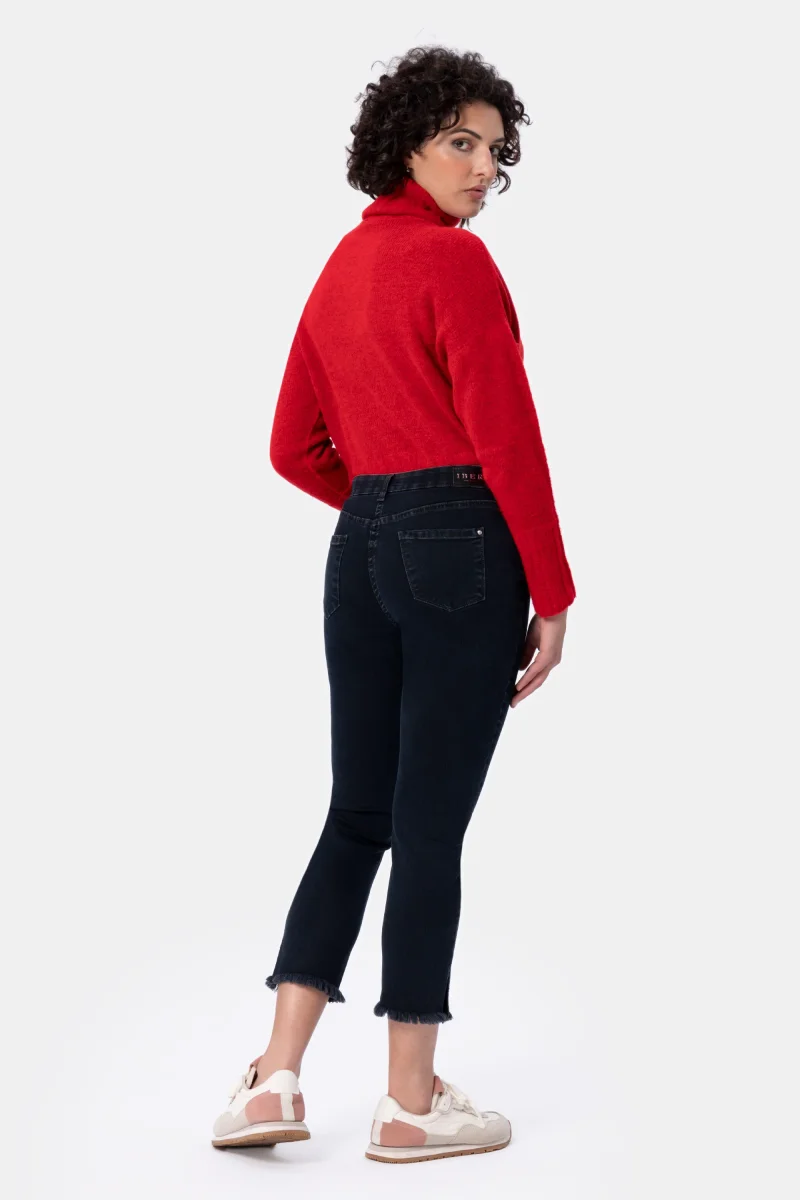 Almey Tmn309 Jeans in denim black super stretch con orlo sfrangiato