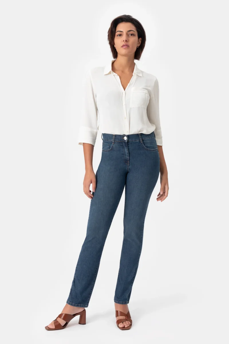 Jeans Donna Slim Push Up Denim super stretch Peso tessuto: Primavera/Estate Jeans push up in denim super stretch con vestibilitร slim dalla gamba dritta. Costruito con vita regolare ed elasticizzata, chiusura con zip e bottone. Caratterizzato da taglio push up che dona al jeans un fit perfetto. Un jeans versatile e sfizioso per essere moderna […]