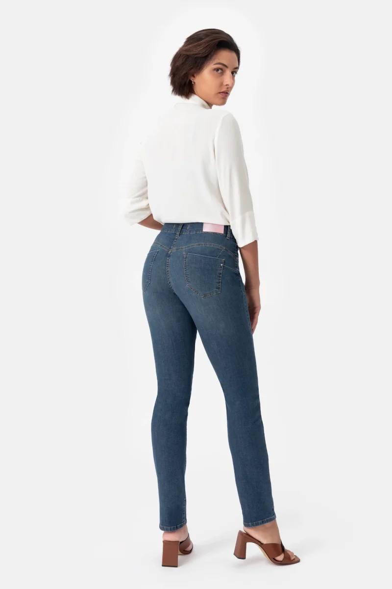 Jeans push up in denim super stretch con vestibilitร slim dalla gamba dritta. Costruito con vita regolare ed elasticizzata, chiusura con zip e bottone. Caratterizzato da taglio push up che dona al jeans un fit perfetto. Un jeans versatile e sfizioso per essere moderna e a tuo agio in ogni occasione.