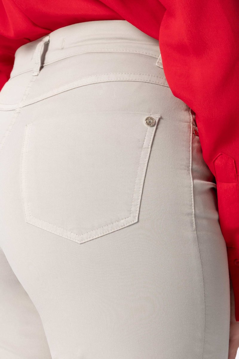 La modella รจ alta 180 cm e indossa la taglia 42 in petra e bianco
