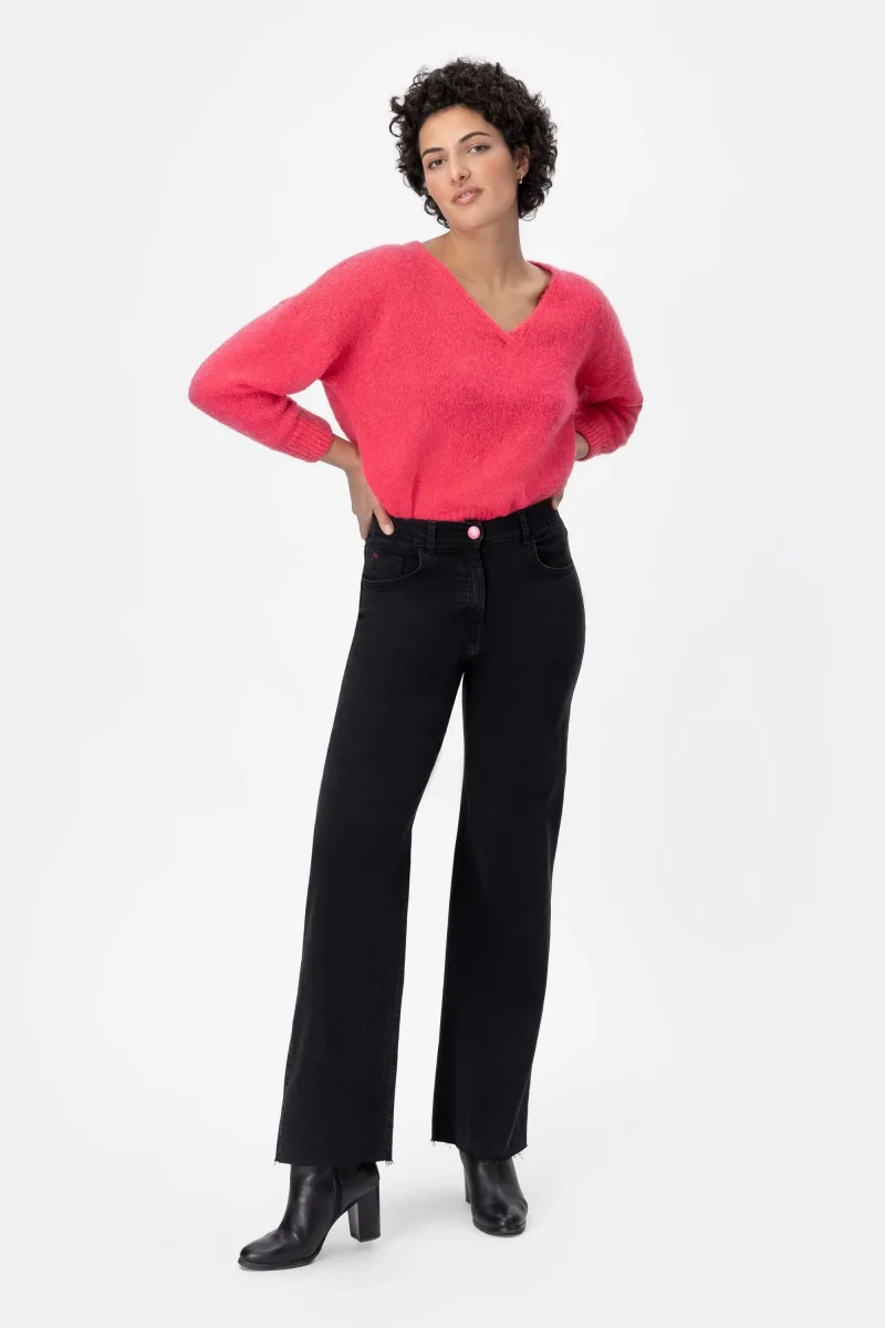 Jeans Donna wide leg Denim super stretch Peso tessuto: 4 stagioni Jeans in denim blu super stretch con vestibilitร palazzo e gamba ampia. Questo modello รจ costruito con vita regolare elasticizzata, chiusura con zip e bottone. Un pantalone attuale, comodo e per ogni occasione, da quelle piรน quotidiane a quelle piรน eleganti. Abbinalo alla scarpa […]